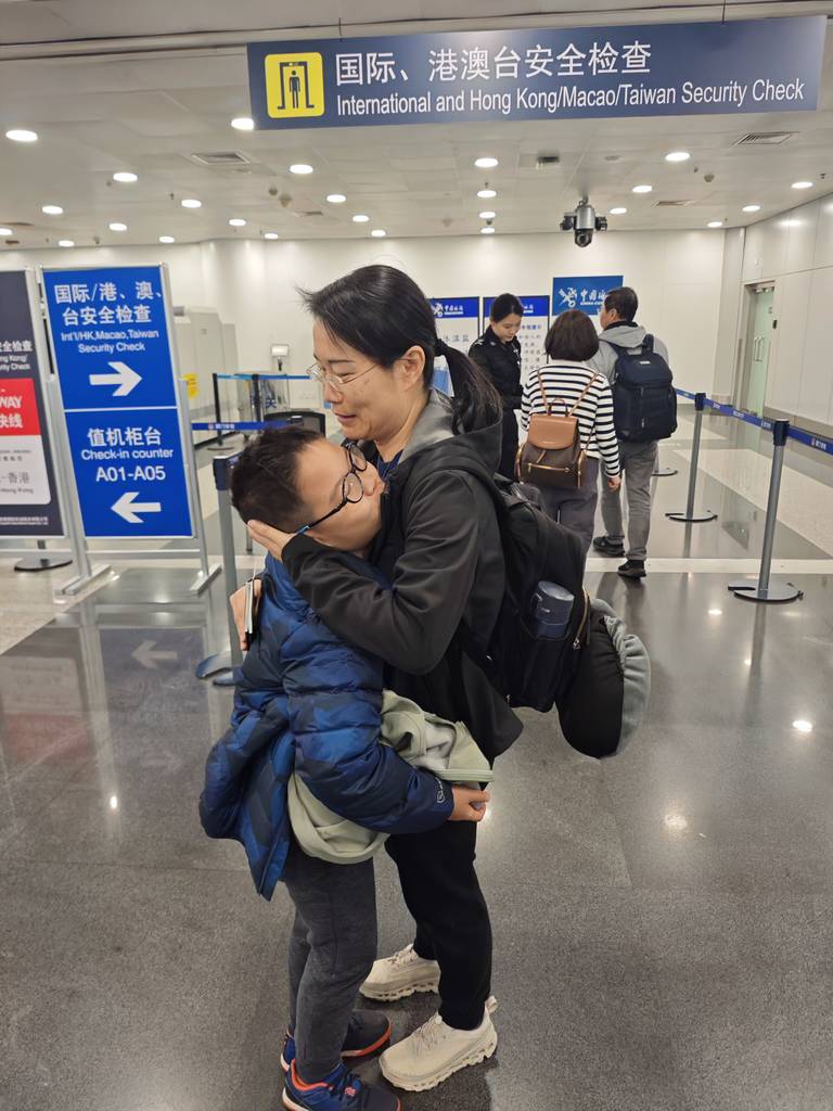 今天妈妈去美国出差,下午1点20的飞机。爸爸默默把妈妈送到机场,默默恋恋不舍地跟妈妈告别,然后爸爸默默去附近看飞机。