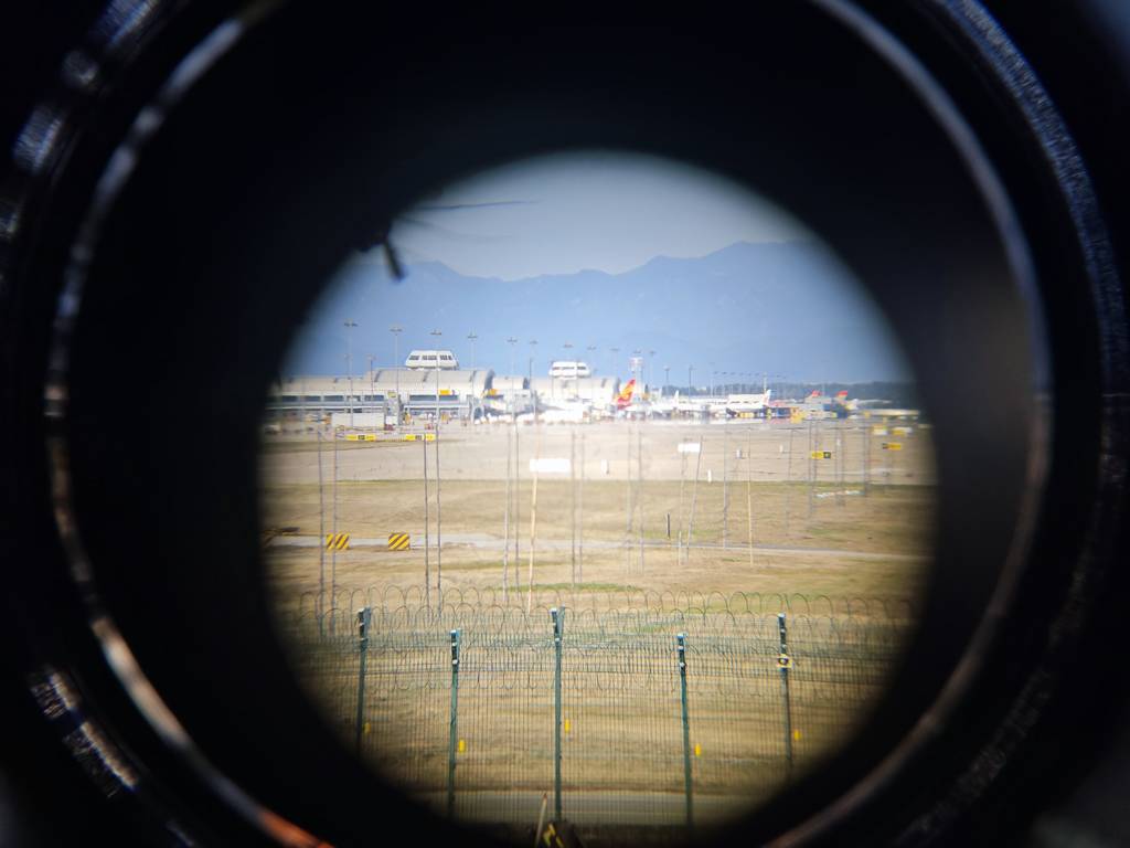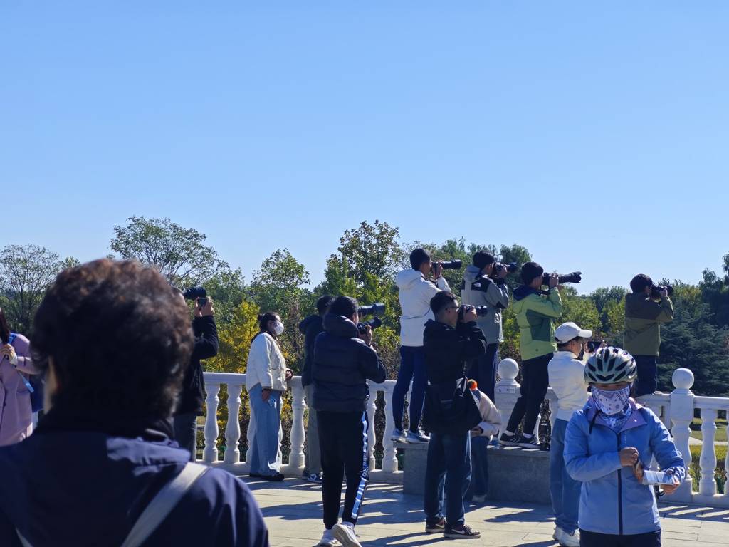 今天我们运气不错,西湖园开着。天气也非常不错,怀柔和密云的山都看的清清楚楚,甚至可以看到慕田峪长城和它旁边“忠于毛主席”的大字。八卦台上来了不少人,其中大部分都是专门来看飞机的,言谈中能知道很多都是常客,对飞机了解的很深。很多都是中小学生,对飞机的了解就像十年前我们来这里时的年轻人。不时有人大叫一声“彩绘”,于是长枪短炮就都齐刷刷地指向了同一个方向。