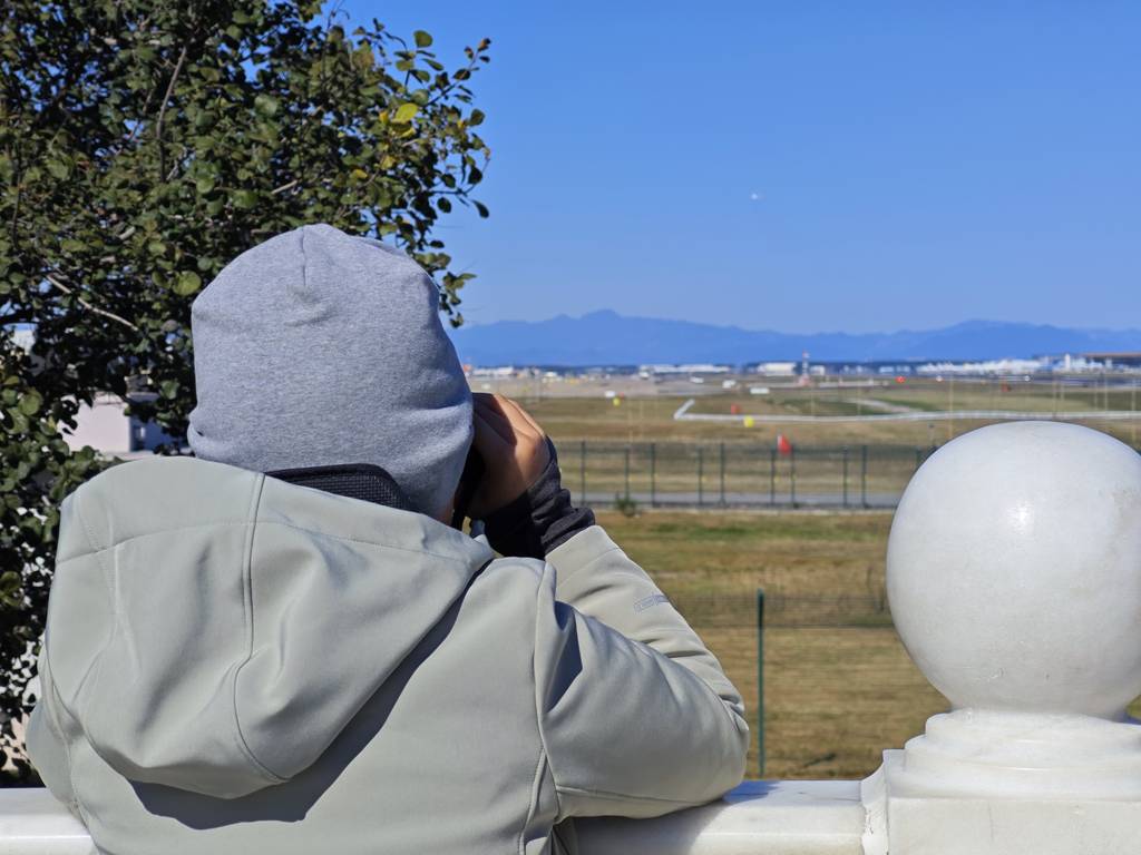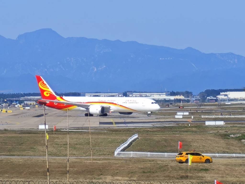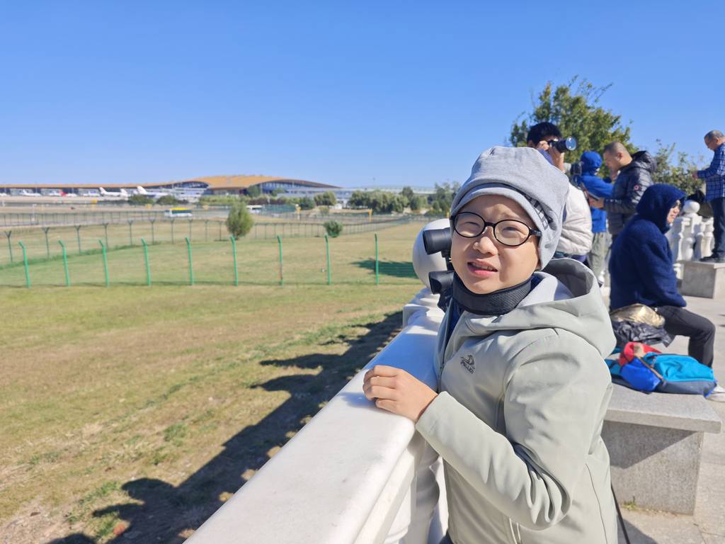 终于妈妈的飞机来了,幸运的是妈妈的飞机就是用中跑道起飞,正好我们可以看到。飞机进跑道前没有停留,迅速的对正滑跑起飞。眼看妈妈的飞机消失在视野里,我们才收拾好望远镜开车回家。