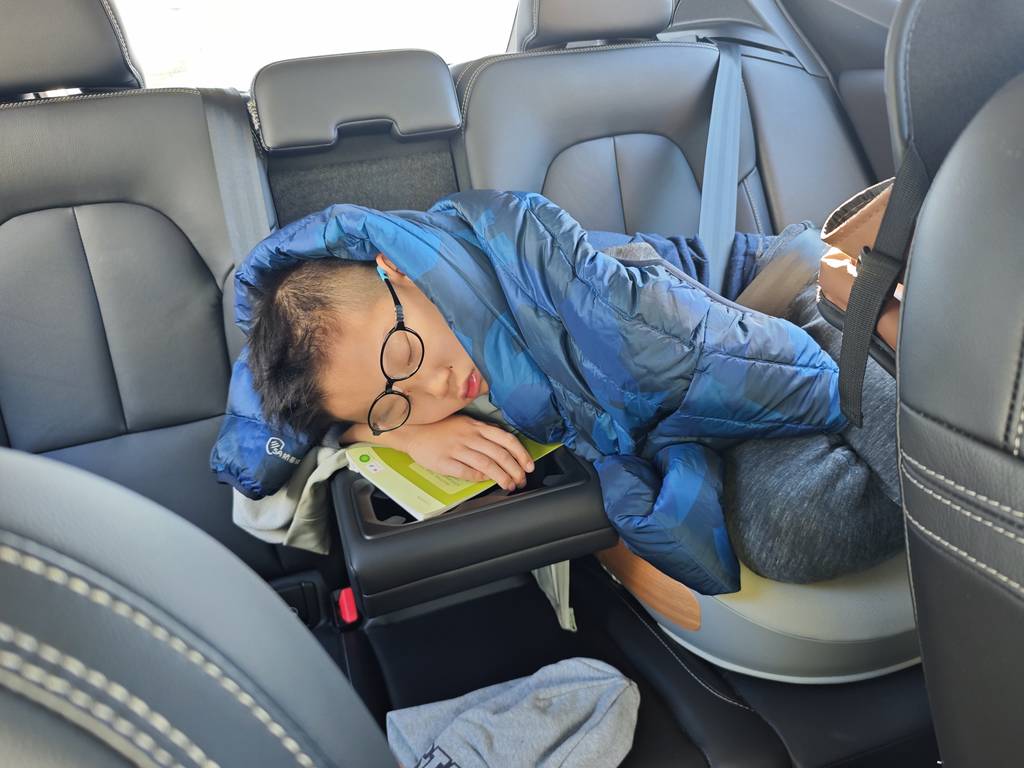 回家的路有点堵,快到终点时默默终于睡着了。于是我们又在停车场里休息了半小时才回家。