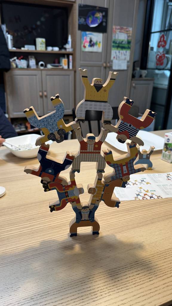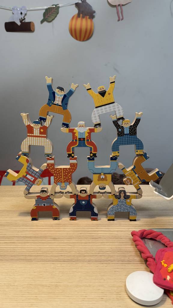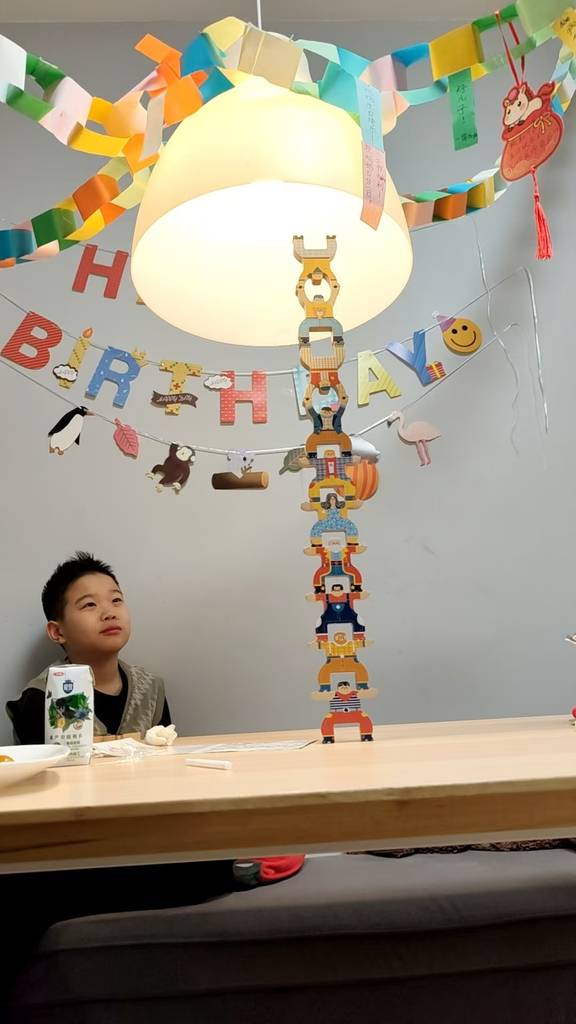 不知怎么默默又把叠叠高翻出来玩了。