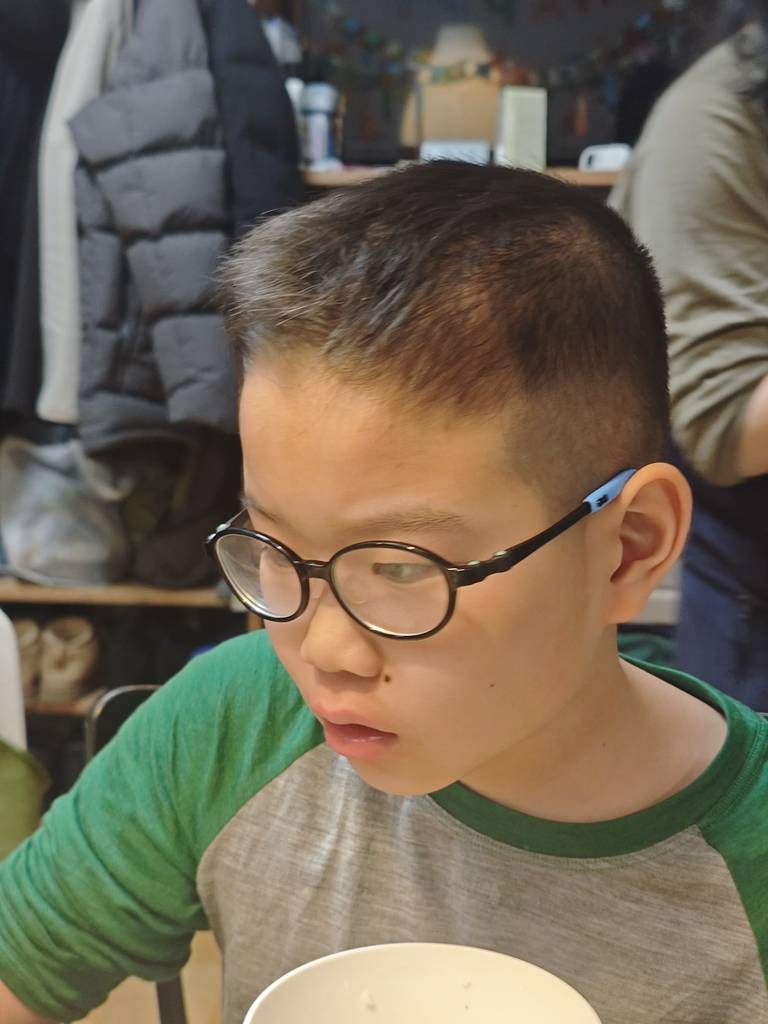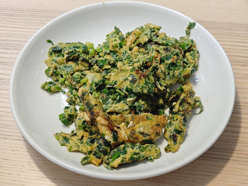 晚上姥姥给默默做了韭菜鸡蛋饼和韭菜炒鸡蛋两种雨水时菜,用来当寒假项目的素材。