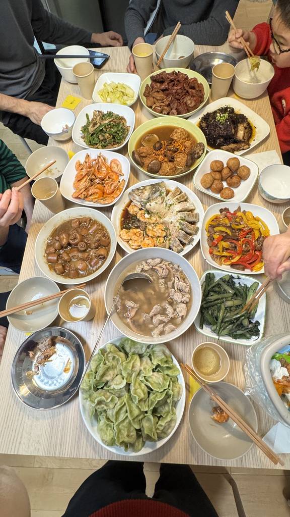 今天是除夕,爷爷奶奶带了几个菜到默默家一定过。祝大家新年快乐!