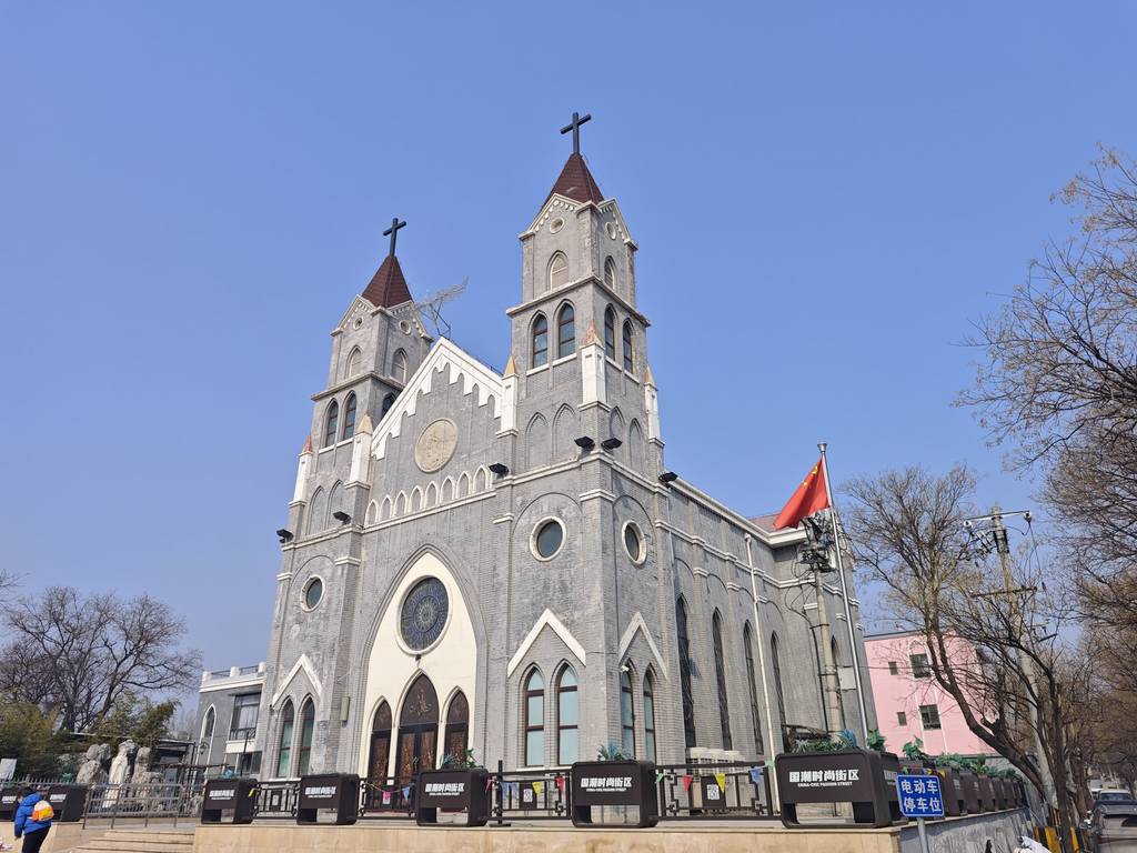 今天正好提三八节,我们在园区的小店里给妈妈买了四支铁绒花。从产业园出来,我们沿着二七厂里的路跨过京广线,又沿着教堂胡同走到了标志性的天主堂。