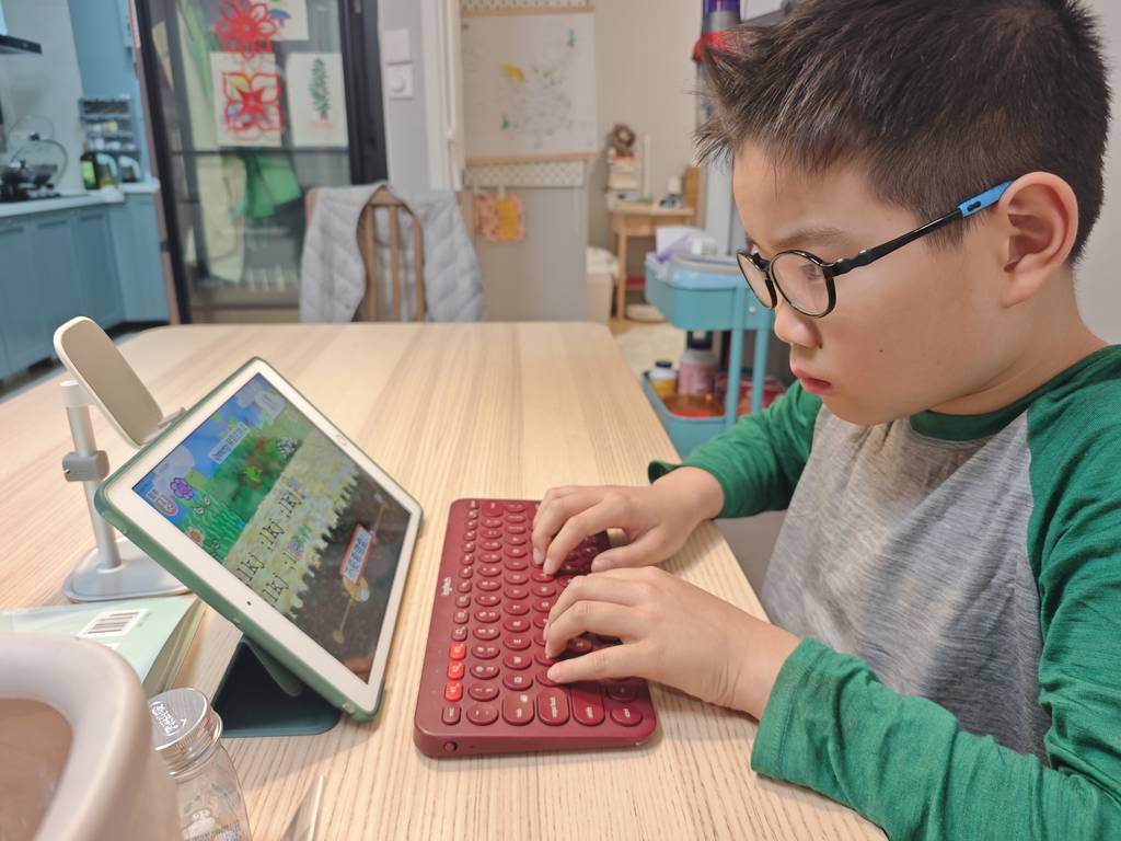 今天是清明假期第一天,在家窝了一天。为了让默默早点可以自己制作文档,让默默试了试键盘打字。