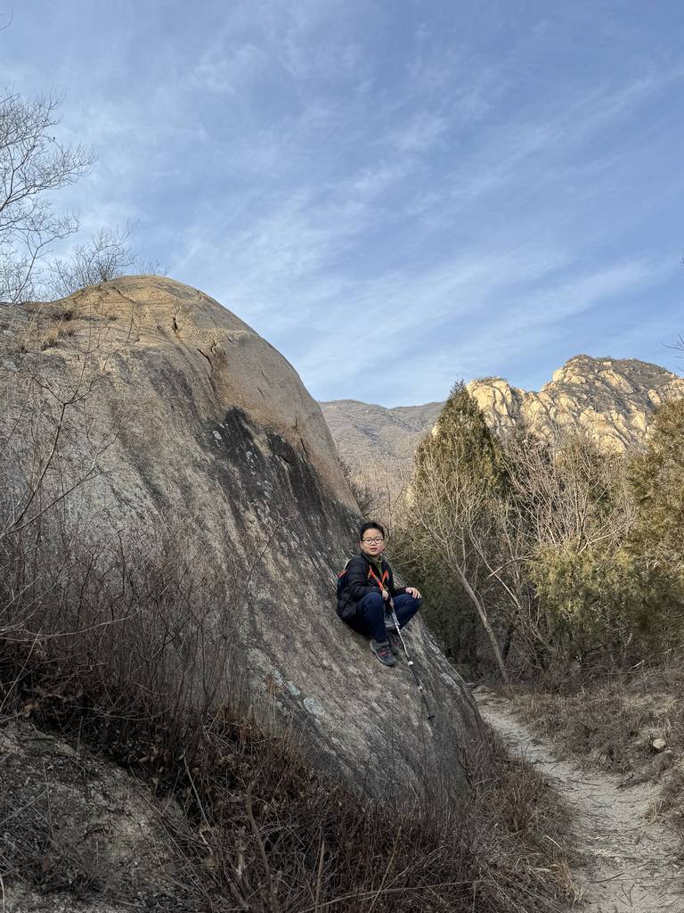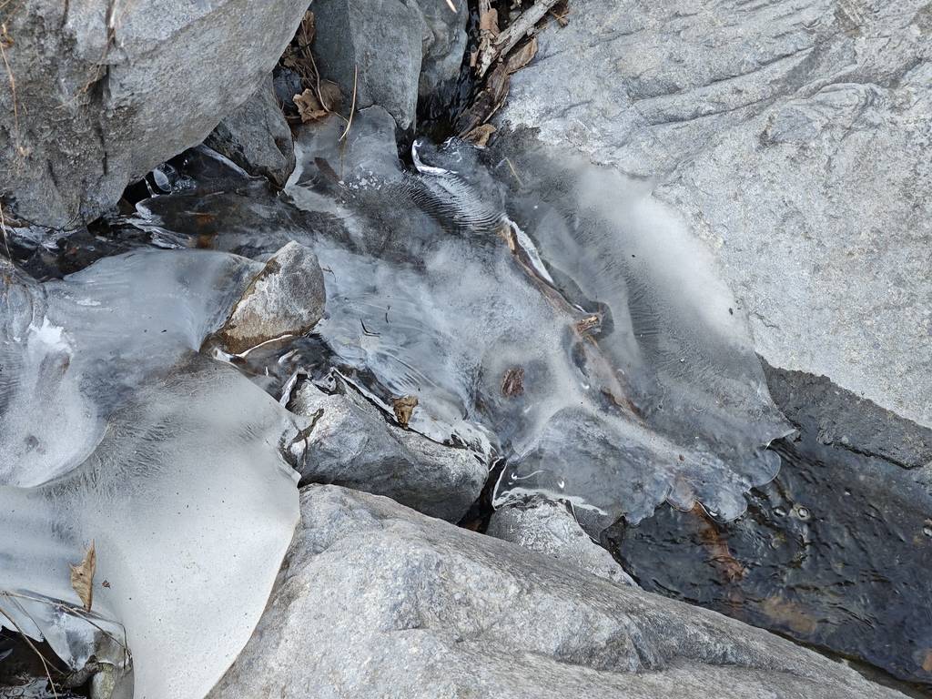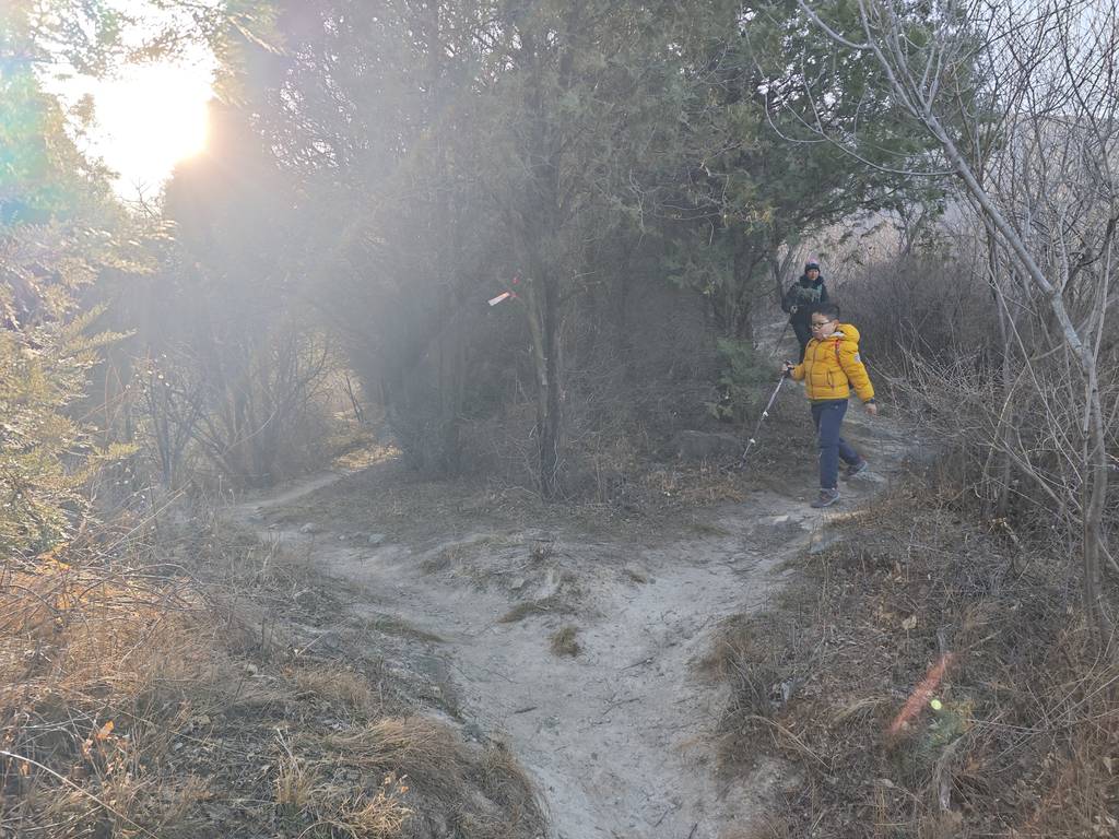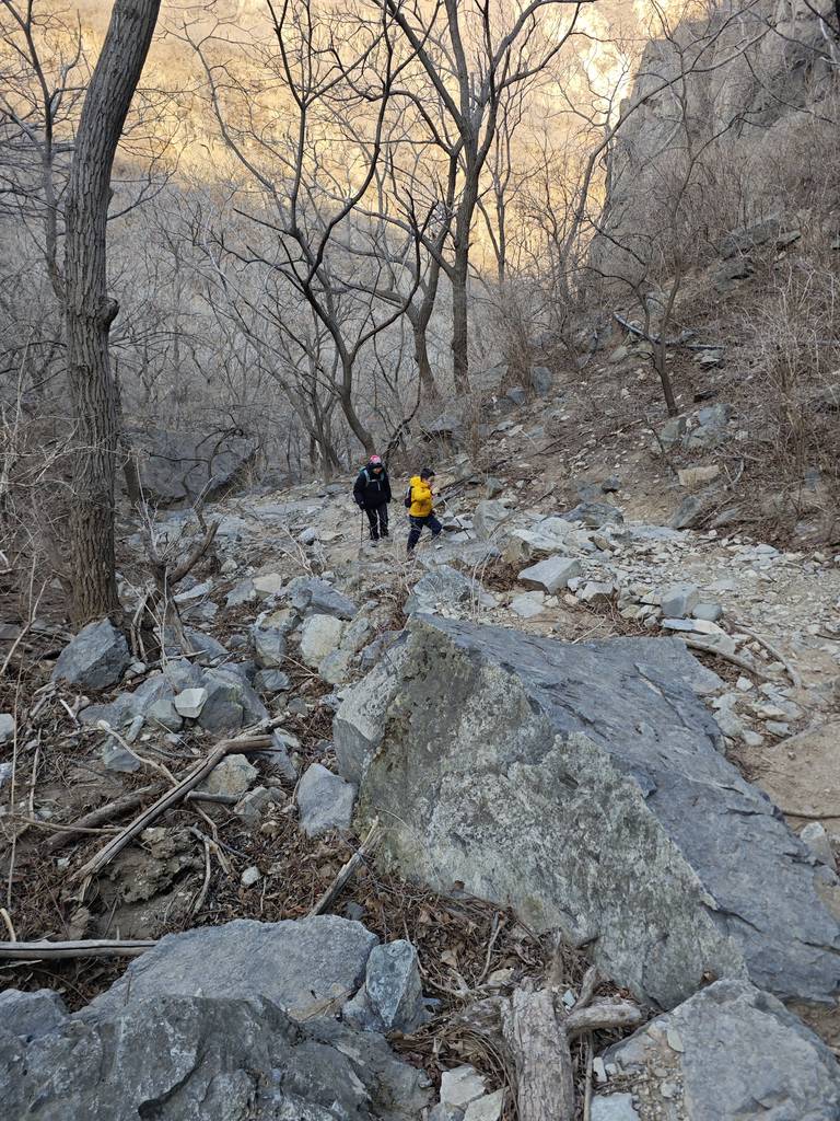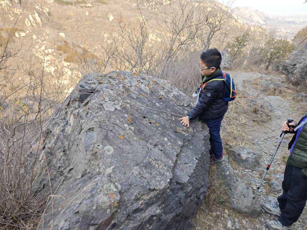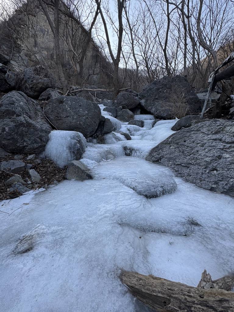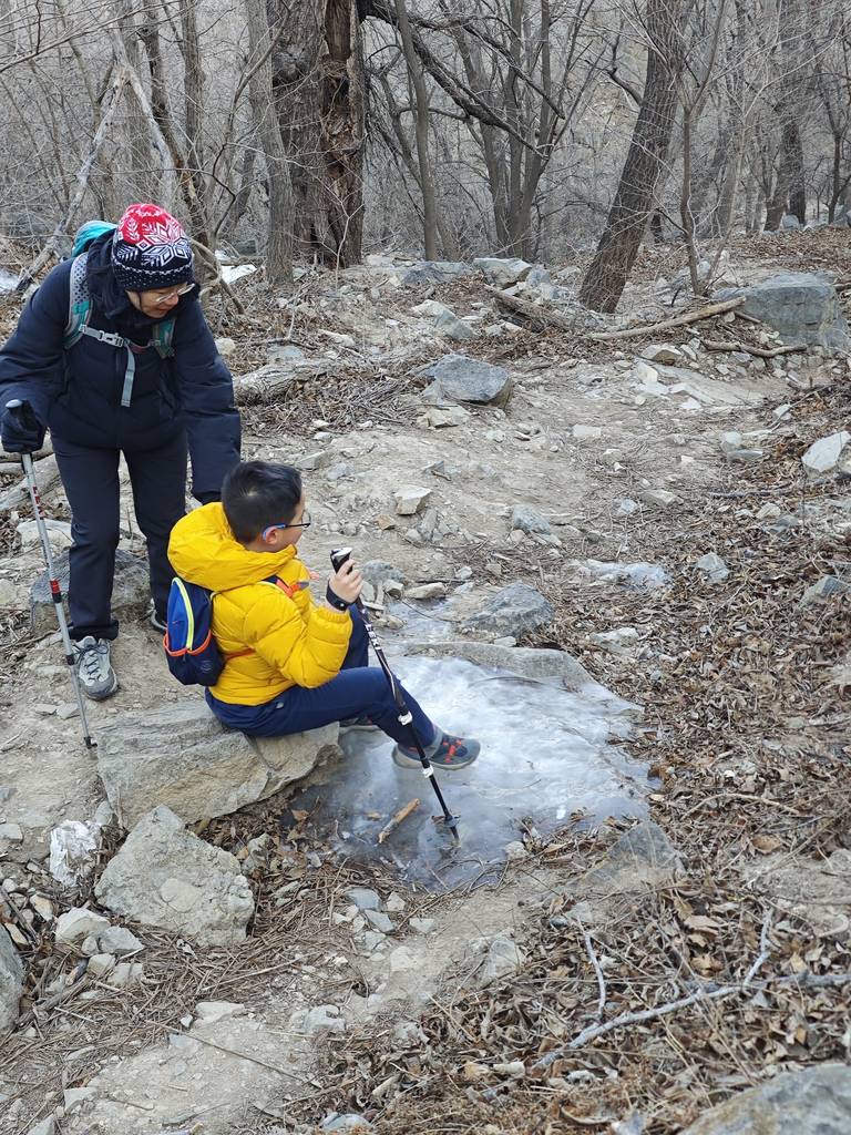 今天是元旦,我们去车耳营小环线转了一圈。在凤凰岭和阳台山之间。大概走了6公里。在河道里看到了很多的砾岩,还有一条山涧,结了冰,还有生长的冰晶。在阳光下的山顶很温暖舒服。