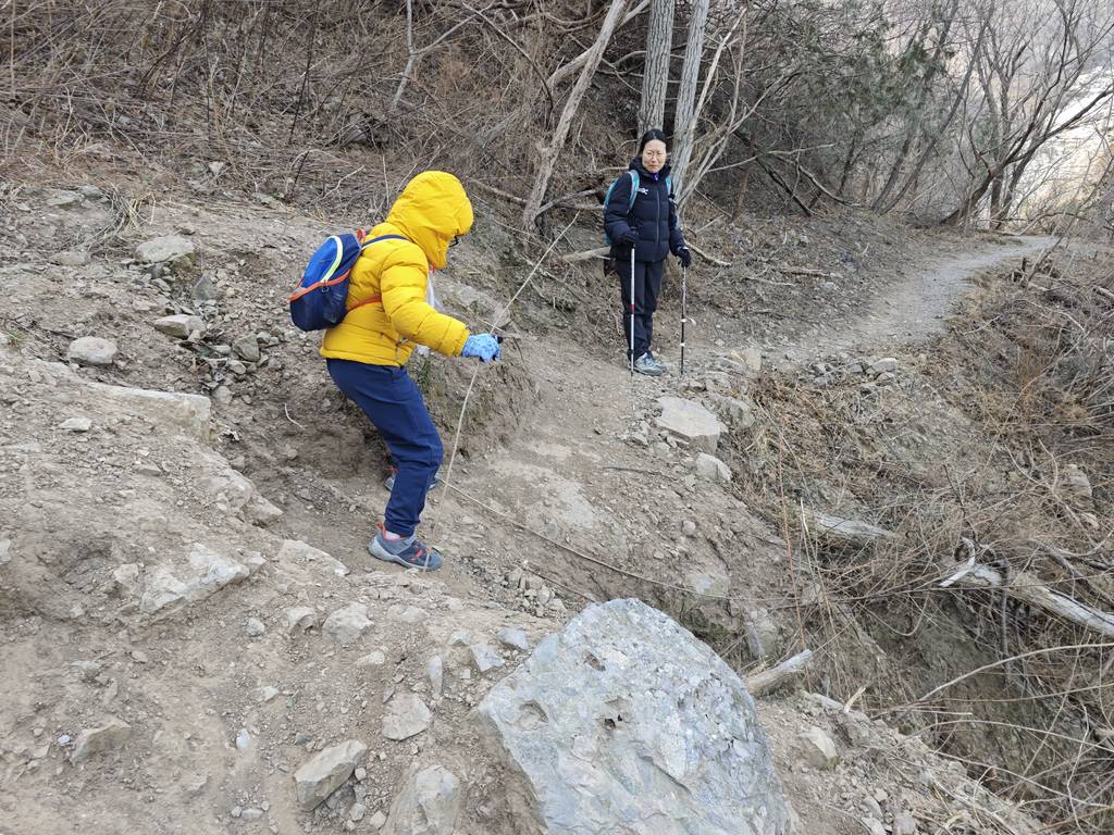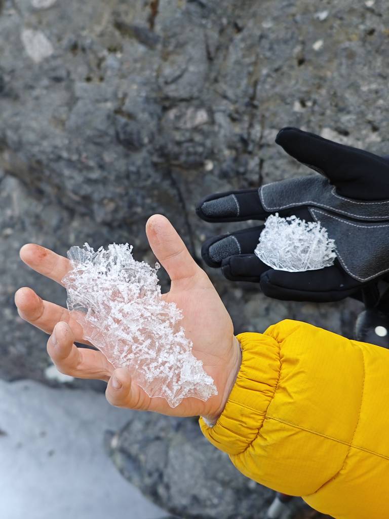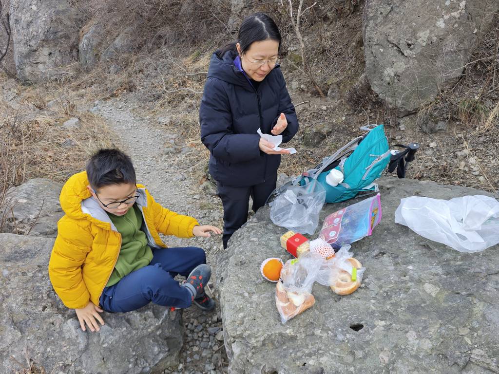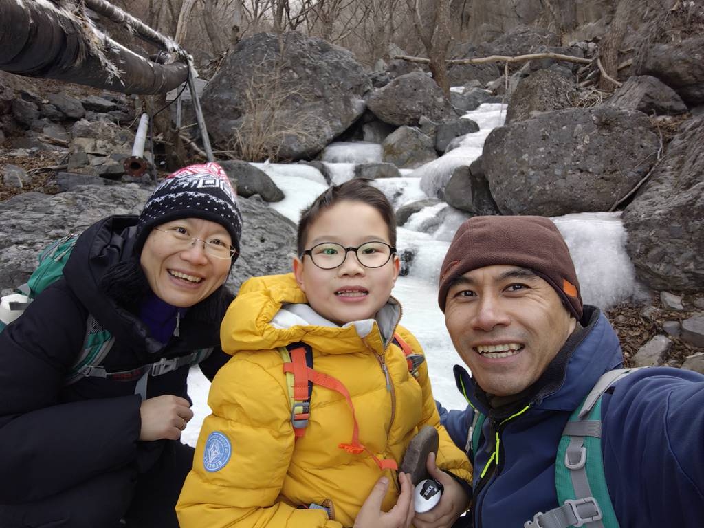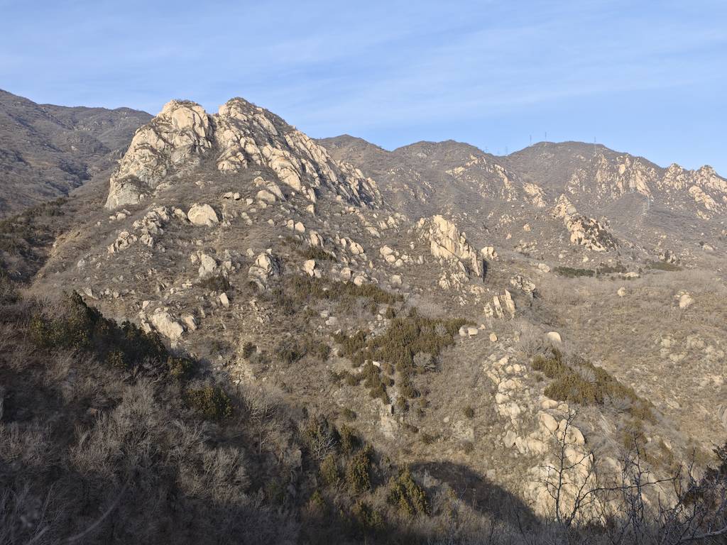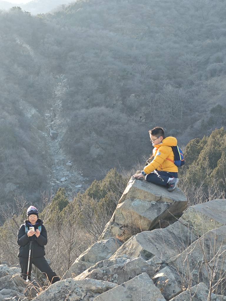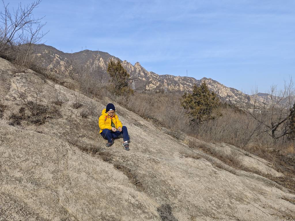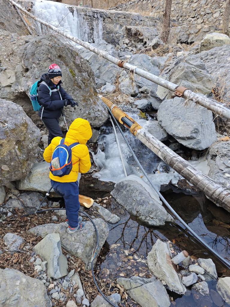 今天是元旦,我们去车耳营小环线转了一圈。在凤凰岭和阳台山之间。大概走了6公里。在河道里看到了很多的砾岩,还有一条山涧,结了冰,还有生长的冰晶。在阳光下的山顶很温暖舒服。