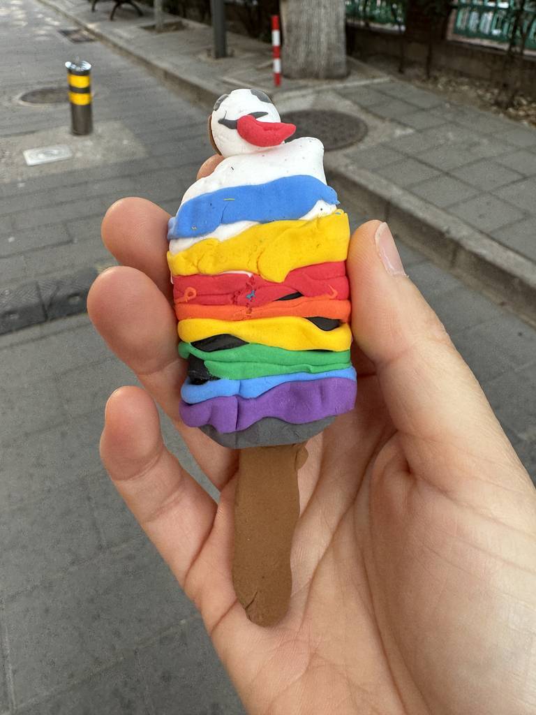 默默在学校做的彩虹雪糕手工,很不错,要是有厂家能做出来就好了。