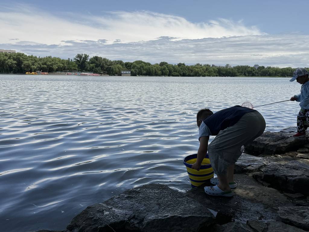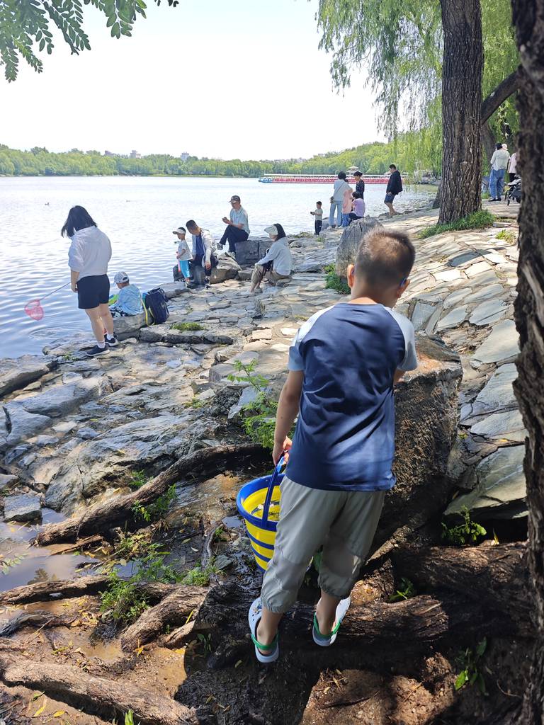 今天先去玉渊潭拎桶玩水,然后回小区参加了社区组织的亲子运动会和跳蚤市场。