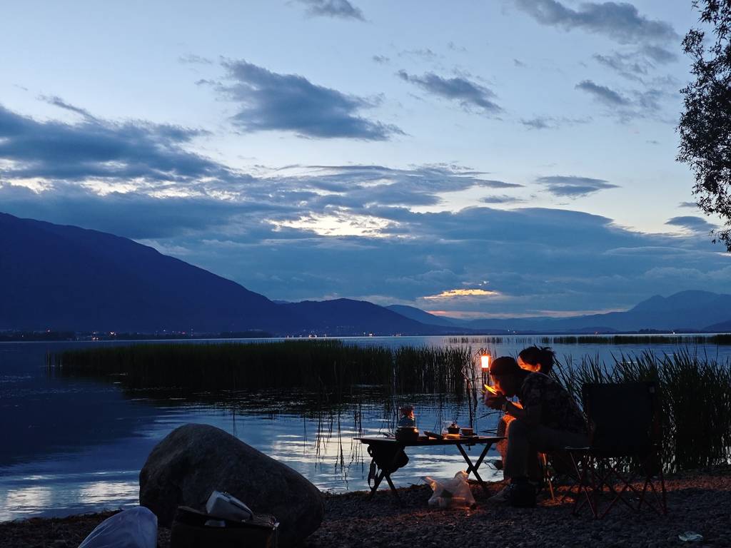 苍山(洗马潭索道到顶-洗马潭索道下到一半-玉带路看植物洱海-感通索道下到底)-打车到喜洲-晚餐过桥米线-海舌公园洱海边晚霞。