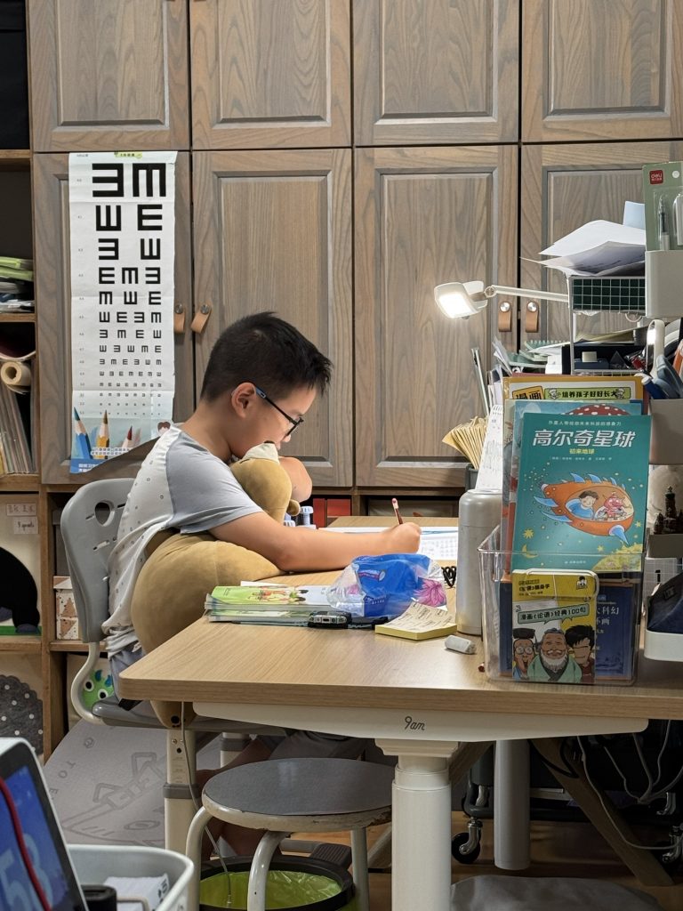 趴趴每天跟着默默写作业,也是个爱学习的熊熊。