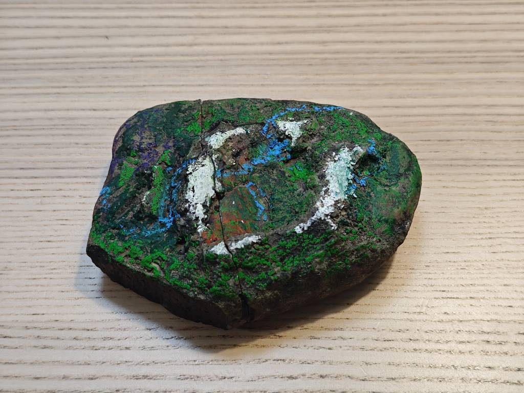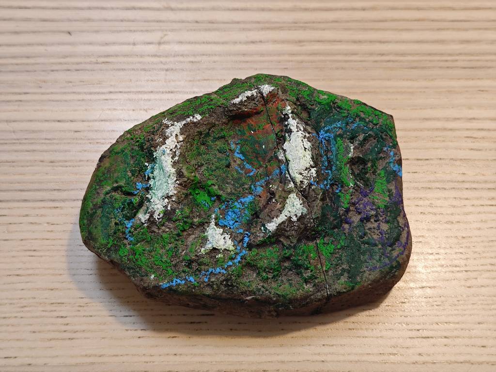 默默给之前从山沟里捡回的石头就着形状上了色。很像爸爸买的一个微缩景观。