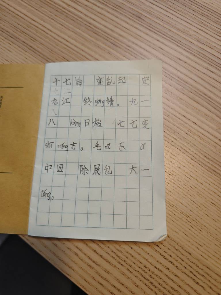 默默读了不少历史,于是自己把学校颂读课本上的《三字经》中关于历史的一段往后续写到了建国。文学水平比爸爸小时候强多了。
