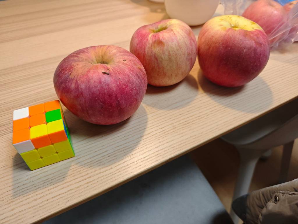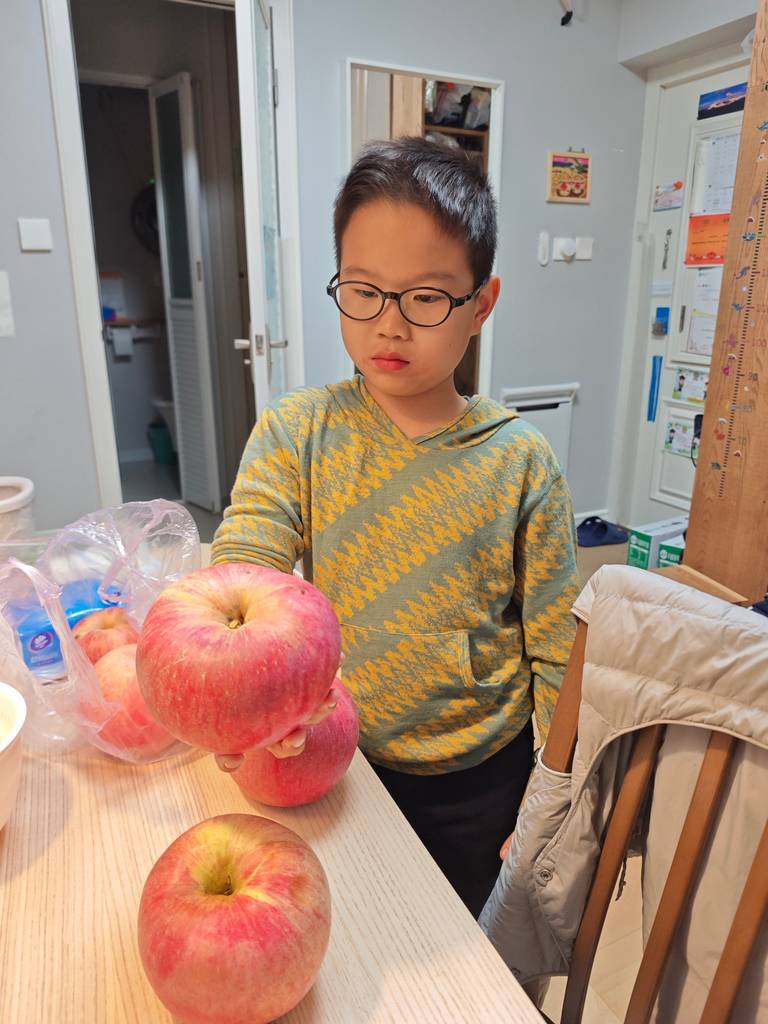 今天爷爷给我们送到几个超大苹果,一个就有800克。第一次见那么大的苹果。