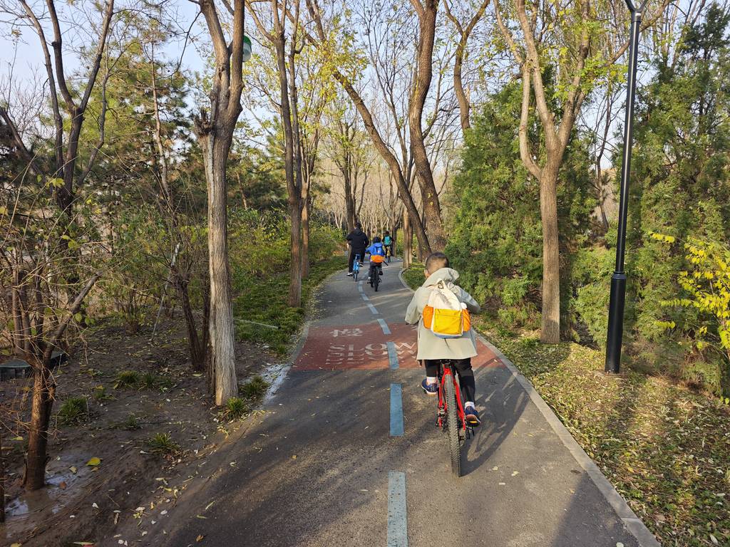 妈妈找到了一条朝阳绿道。今天约上了芒果一起去骑,最后一共骑了18km左右。默默很喜欢小宝宝,小宝宝也很喜欢他,在小孩子里还挺少见的。