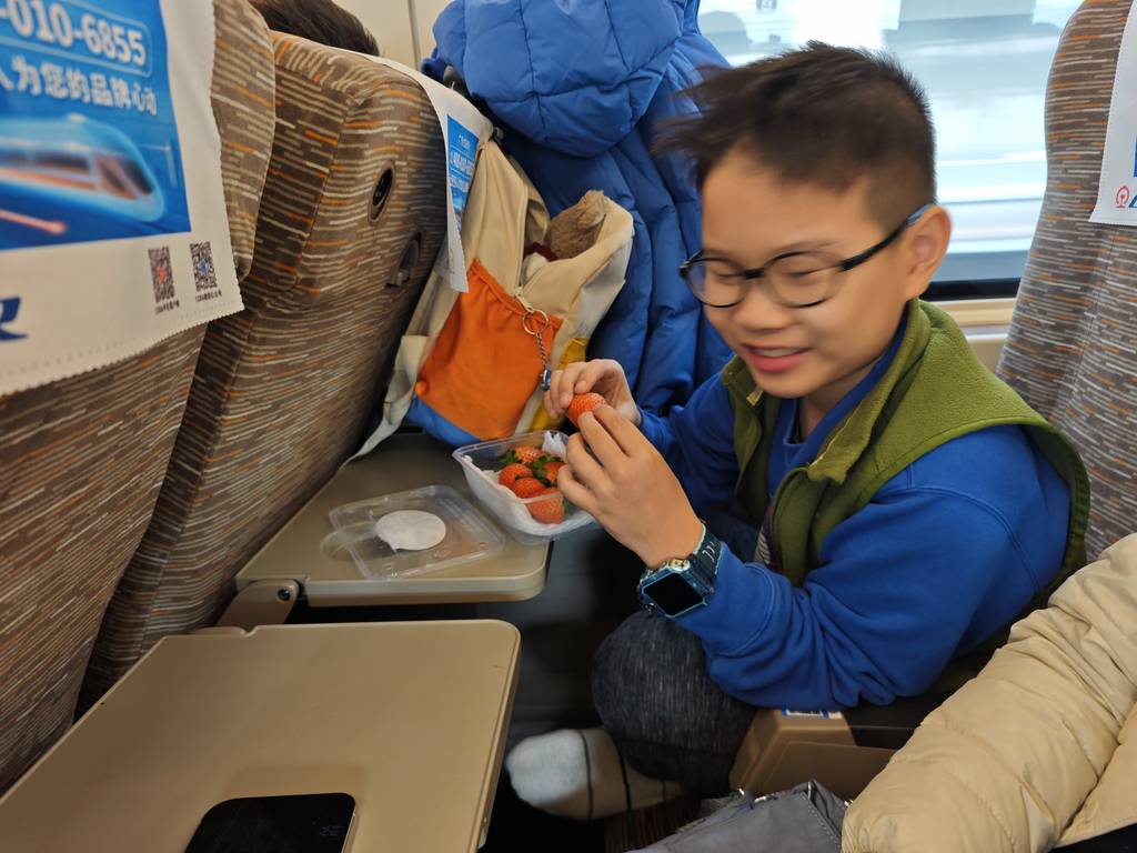 高铁上,默默用自己的零花钱买了盒草莓,肉疼。下车之后,就在车站附近来了一碗正宗的刀削面。