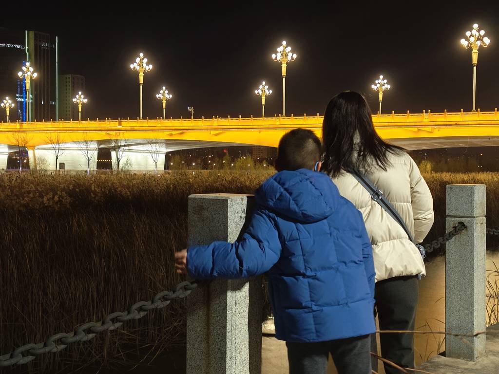 吃完饭回屋休息一小会儿,我们又出门去汾河边转了转。在栈道上走了一小圈,参观了著名的迎泽大桥后,我们才回屋休息。