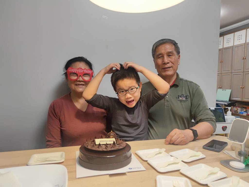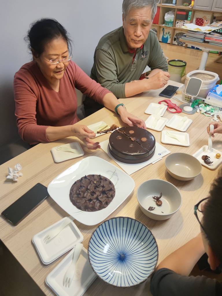 今天是奶奶的生日,我们邀请芒果在钢琴课后来家里一起吃蛋糕,还给肖恩送去了一大块。这次点了奶奶最爱的全巧克力蛋糕,一点牛奶都没有。为了够分给8个人,还特意买了个8寸大的蛋糕。祝奶奶生日快乐!