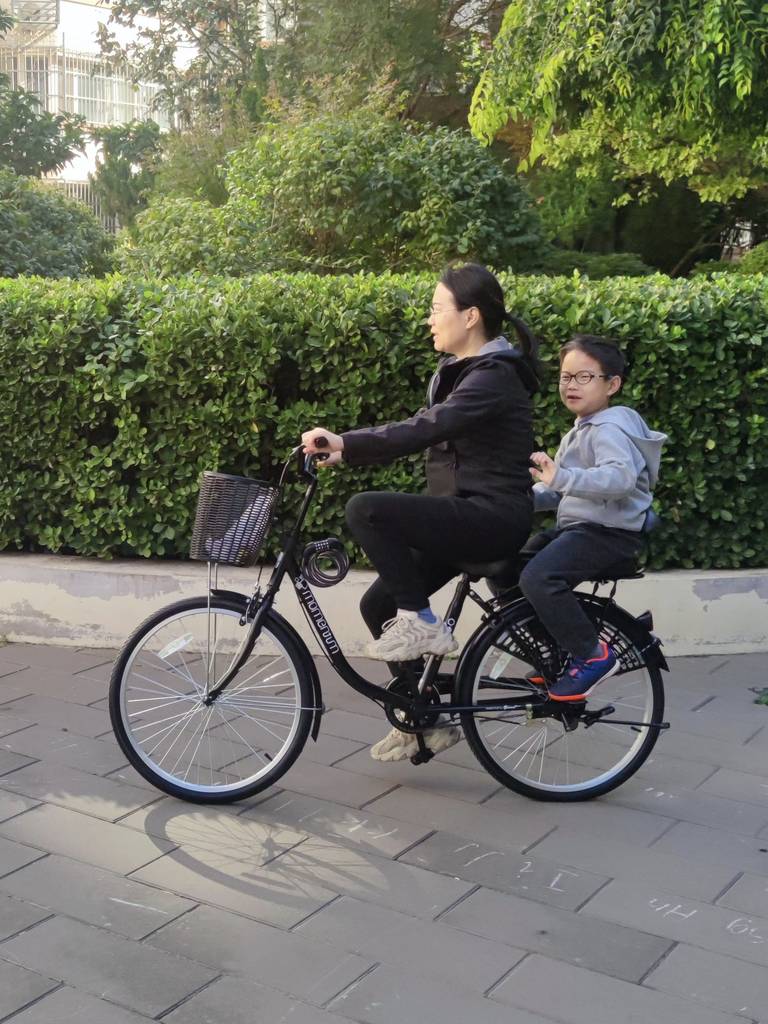 妈妈的上一辆自行车还是十几年前学校时期的,还没有带过人,这次先在院子里带着默默遛了几圈才敢上路。