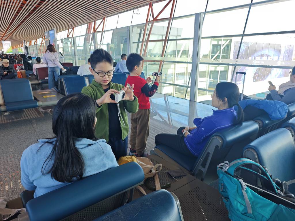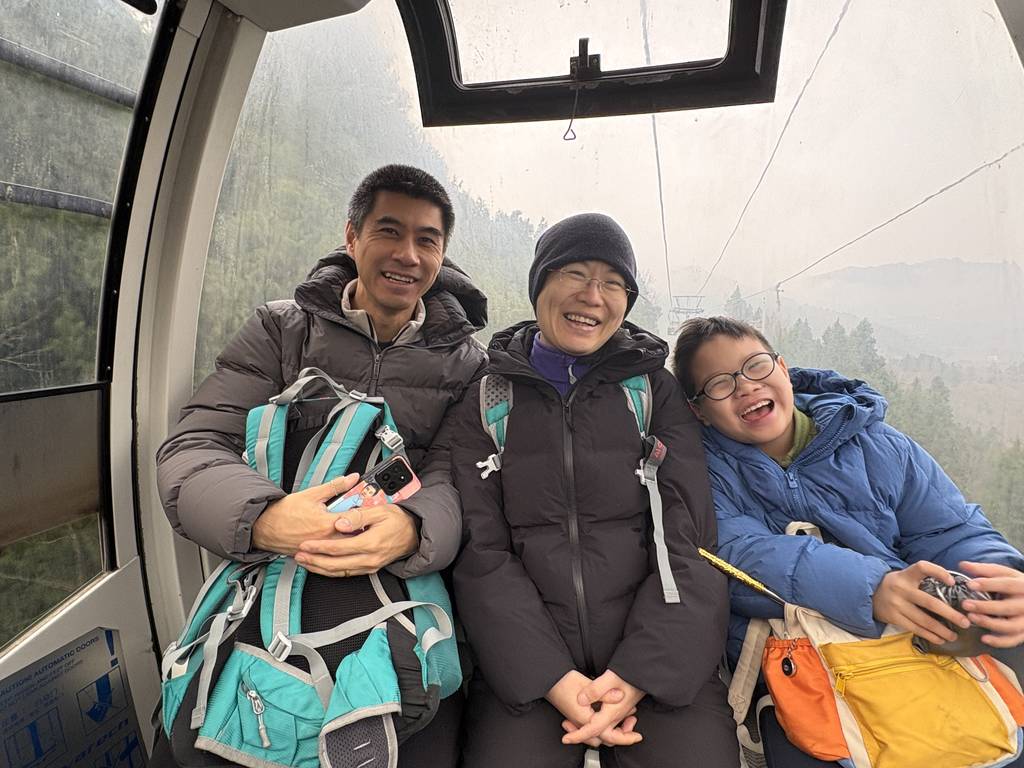 坐上大巴车一样的缆车下山,看着悬崖上的猿猱道发怵。下山后直奔机场加油还车值机安检。默默和爸爸都是第一次体验商务舱,很新奇的感觉。