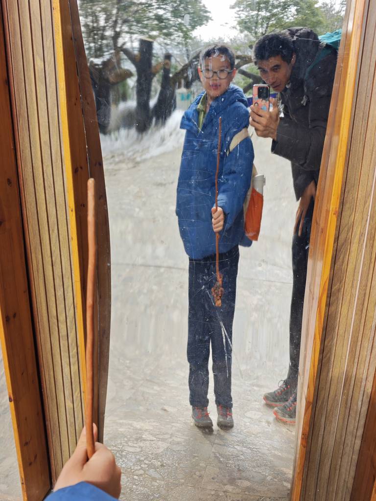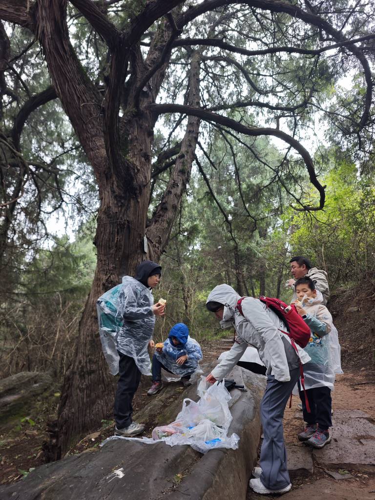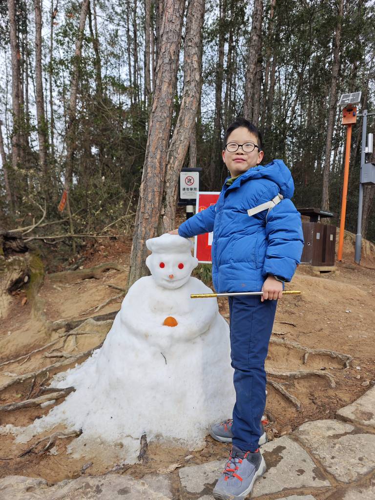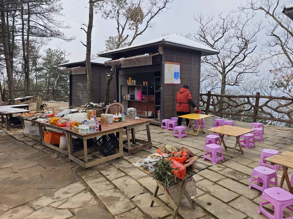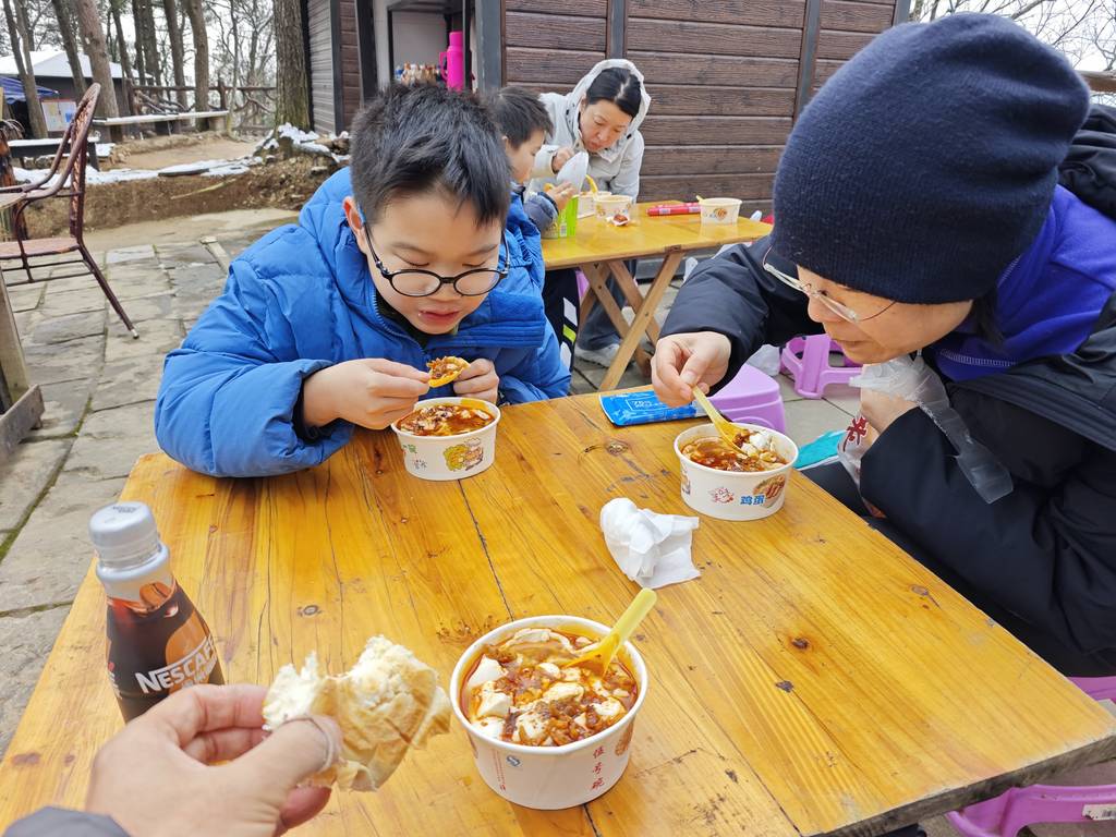 到了山顶,我们在一家小店吃了两碗豆花,还买了两只疙瘩拐杖。