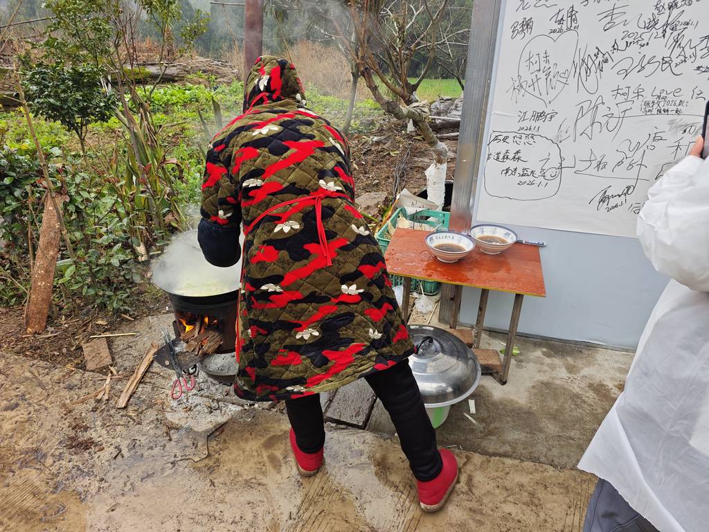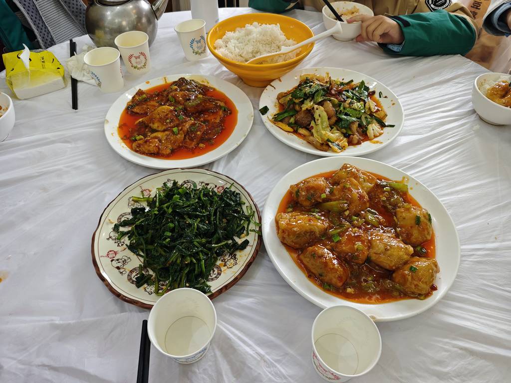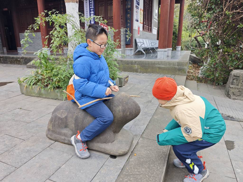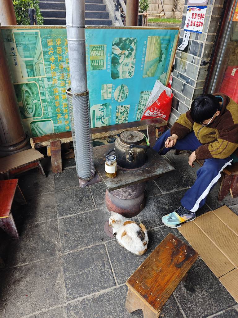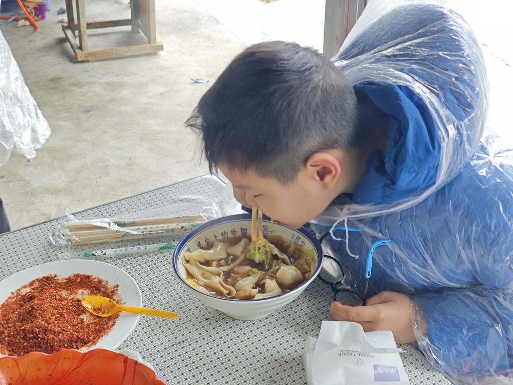 到了山顶,我们在一家小店吃了两碗豆花,还买了两只疙瘩拐杖。