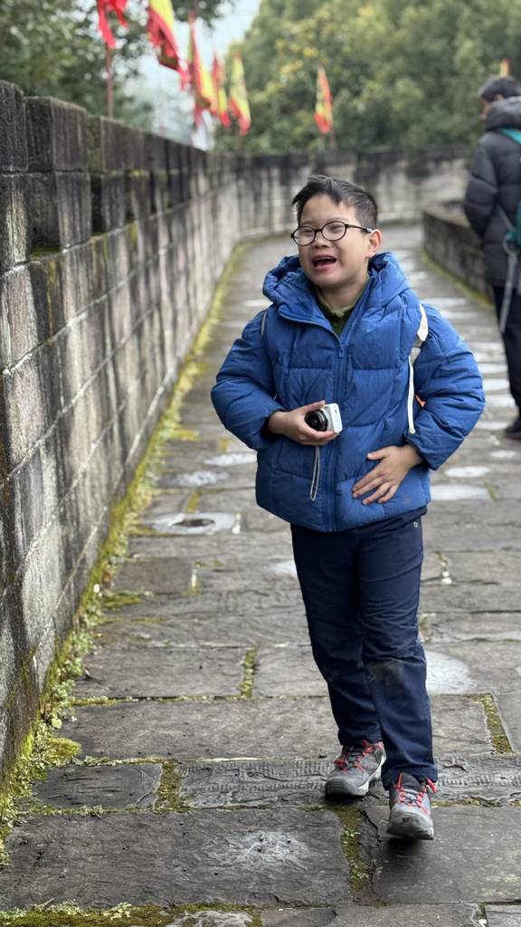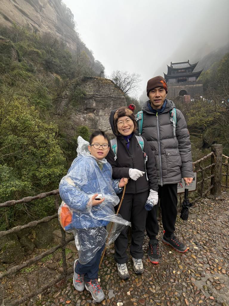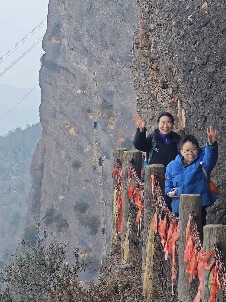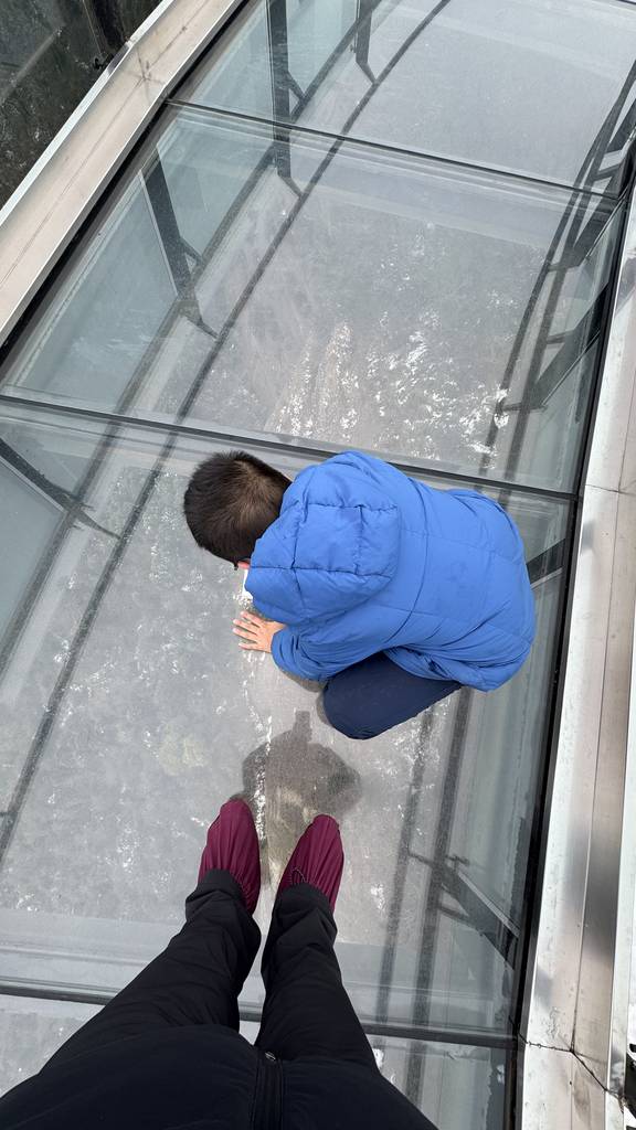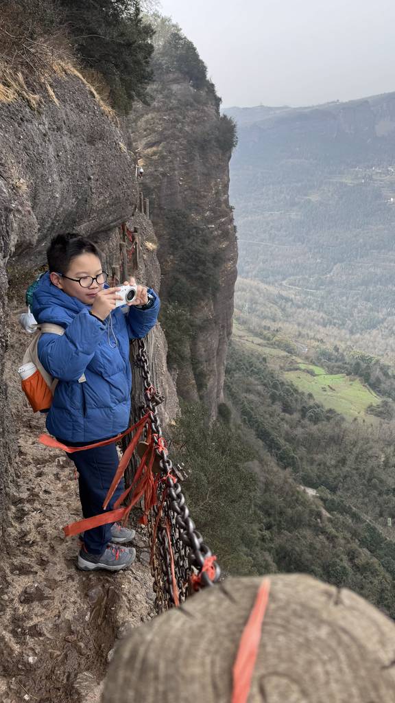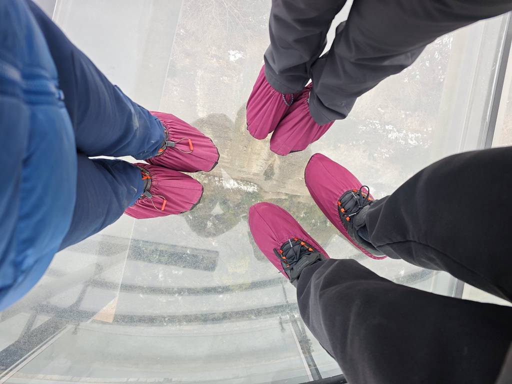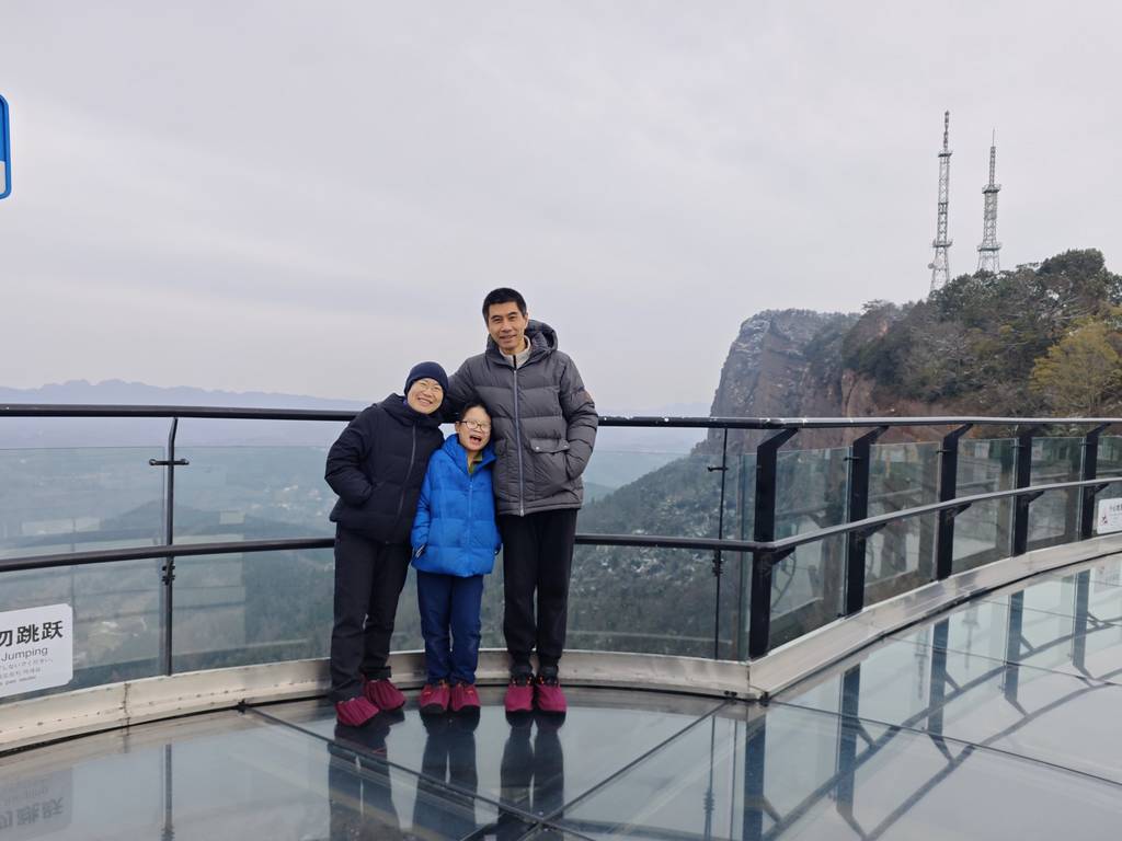 下山前,我们又到玻璃栈道观景平台上逛了一圈。九章妈妈恐高迈不开腿,默默则是完全不知道害怕。