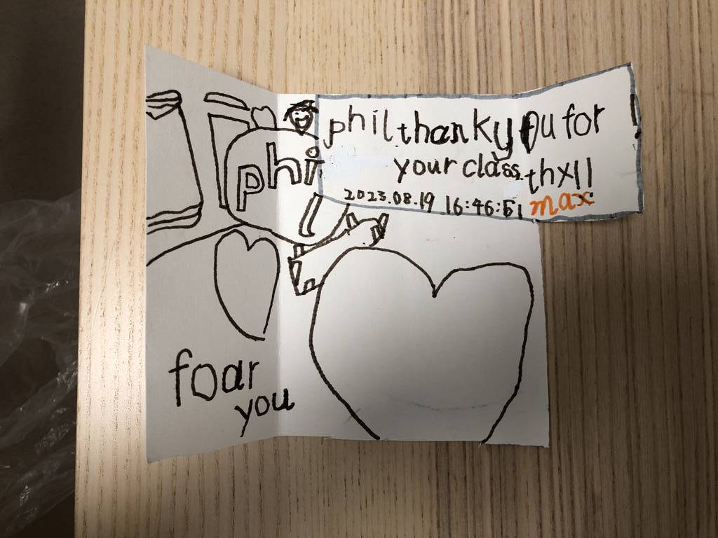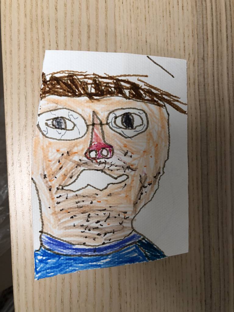 晚上回家后,默默还给phil画了画像和贺卡,不过爸爸记着phil并不戴眼镜啊。