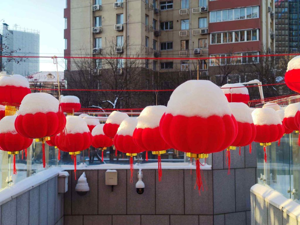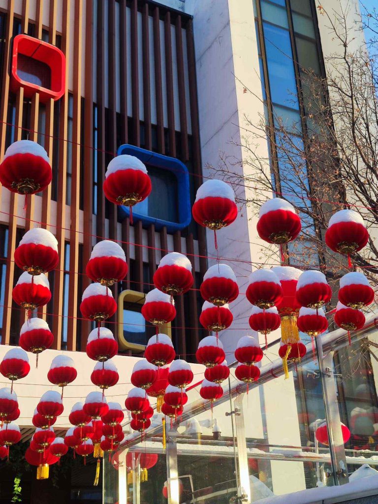 带好露露老师发的shopping list,我们骑车来到超市。在超市外面有两个铜人像,介绍老北京卖食品的小摊。