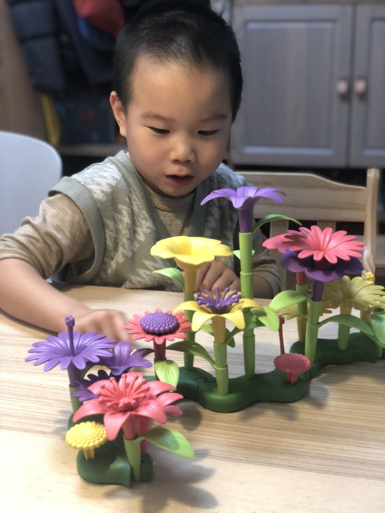 吃完蛋糕收拾完桌子,可以拆礼物啦。这次默默的礼物是GreenToys的花朵和别墅,默默正好可以用它们来装点自己的city。