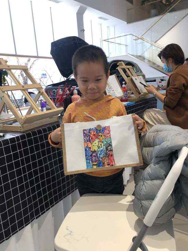 在4S店的时候,默默还参与了店里的画画活动,画了一个自己的小包。默默很喜欢。