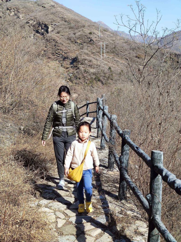 在这里欣赏了一会儿,我们继续往下走。下去的路还是很险,一路都要扶着石头。路上经过一处流着水的石头,爸爸走在前面,正在提醒默默要小心地滑,话音未落,默默摔了一个大屁墩,把屁股全浸湿了。幸好还有备用裤子,赶紧给默默换上。