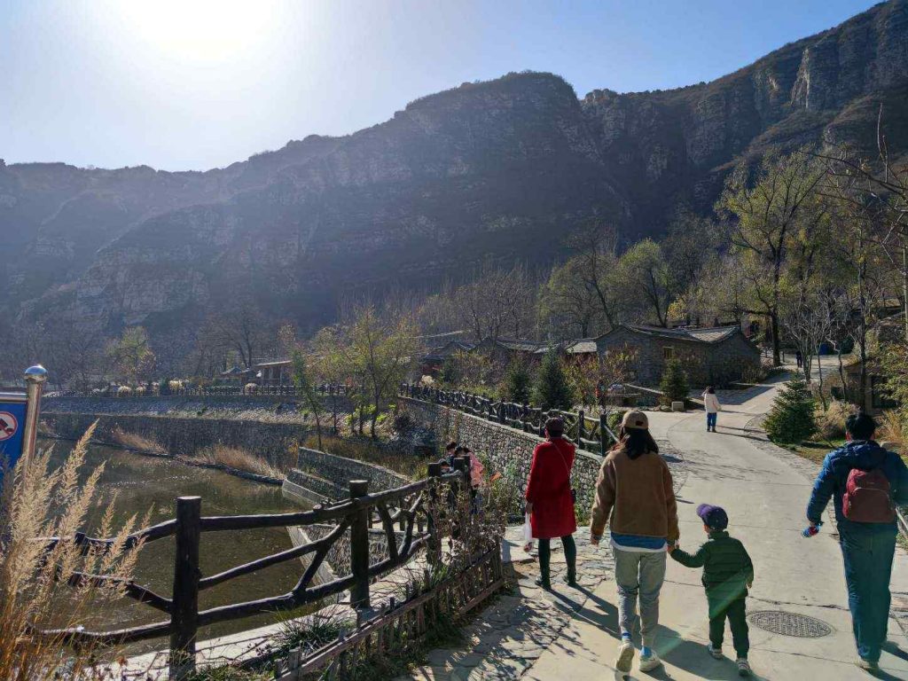 顺着景区路走到山脚下,一路风景很好。最终的出口就在童话森林里,但是大门紧闭,还好没有上锁,我们把门打开一条缝溜了出来,顺利地回到了大路上。