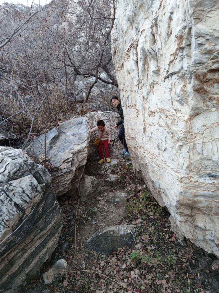 吃完饭继续往上爬,经过了很多巨大的石头形成的自然的路。翻过去,我们就到了此行的最高点。默默在路边发现了几块一层一层的石头,说这是三明治,要把他们都吃掉,牙口真好。