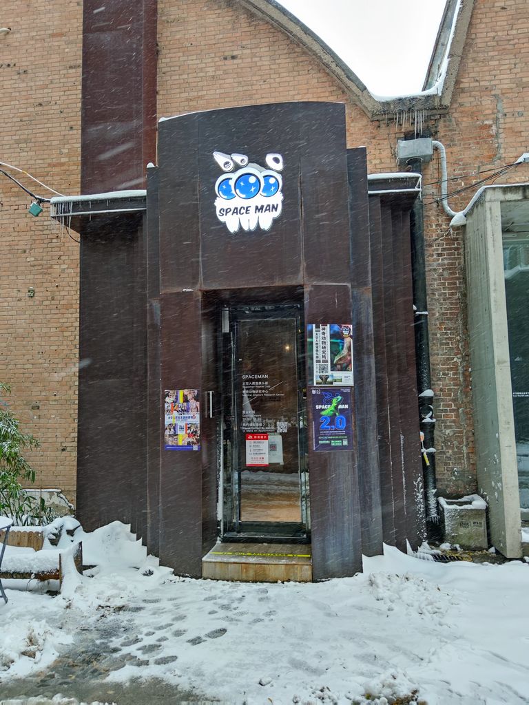 爸爸听同事说798有个爬宠馆不错,是个遛娃的好地方,于是早早地买了美团的票。两大一小150元。上一周预约时只有下午场了,时间不太合适,就顺延到了这周,结果正好赶上了大雪。下楼的时候雪已经很厚了,而且还在下。