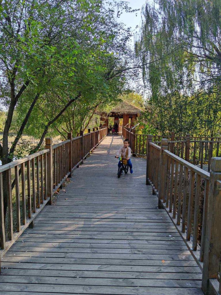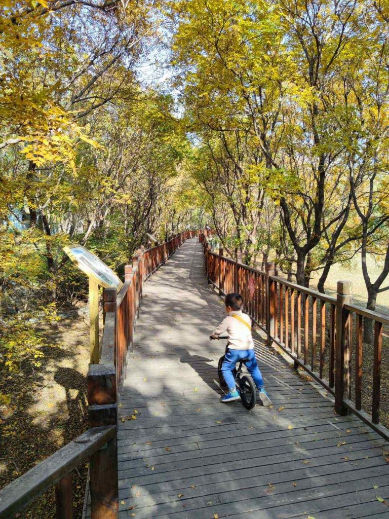 没想到去南海子比戒台寺还远,要开30公里。自15年从GE离职,爸爸也很久没有接近过亦庄了。这里的停车场超大,还不收费,下车后给人的感觉就是个超大的世纪园,对游客非常友好,平易近人,儿童自行车和平衡车都可以进,不像奥森那么多人和规矩。