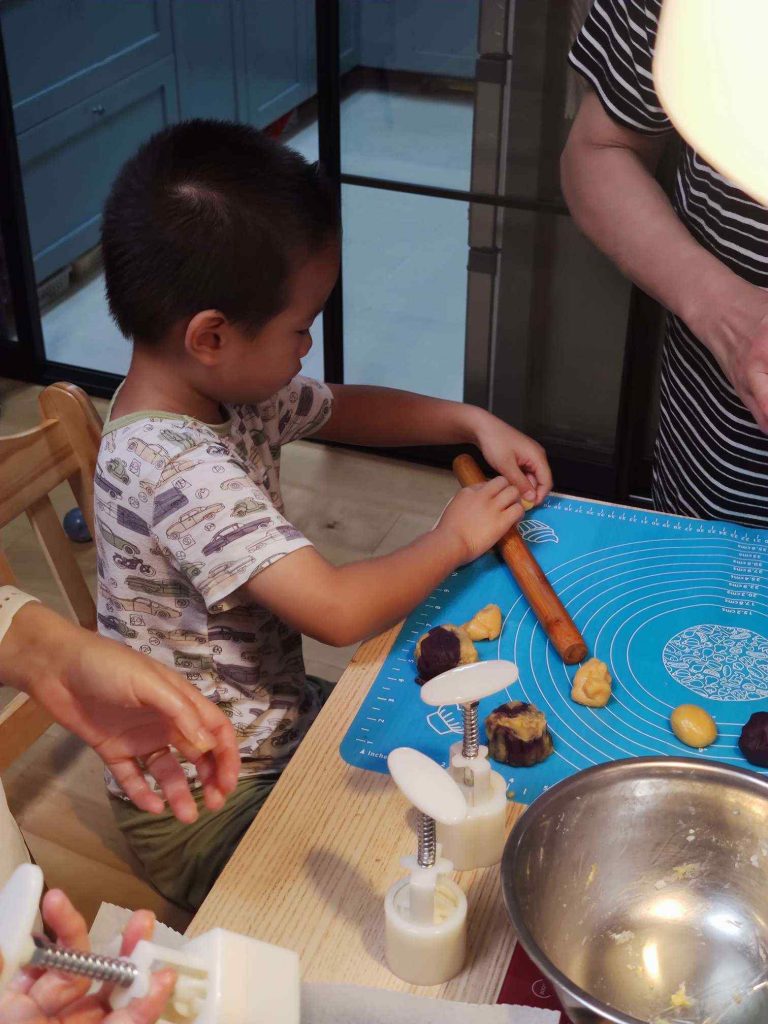 下午起床以后,终于要开始做月饼了。因为买得晚,做月饼的材料是爸爸在两家店里凑齐的,买完就发现月饼模子各家都没货了,庆幸庆幸。