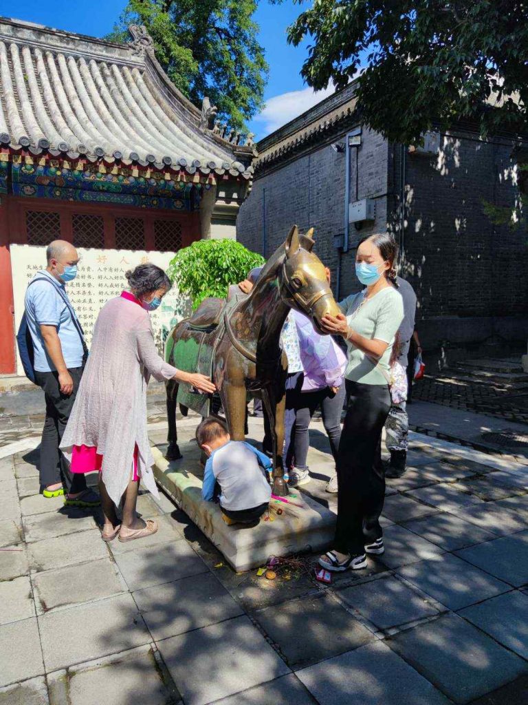 走了一小圈,快回到出口的时候,默默找到了十二生肖壁和一匹铜马。又上去帮它抛抛光,就出门回家了。在门口还遇到一个喜感的道士。
