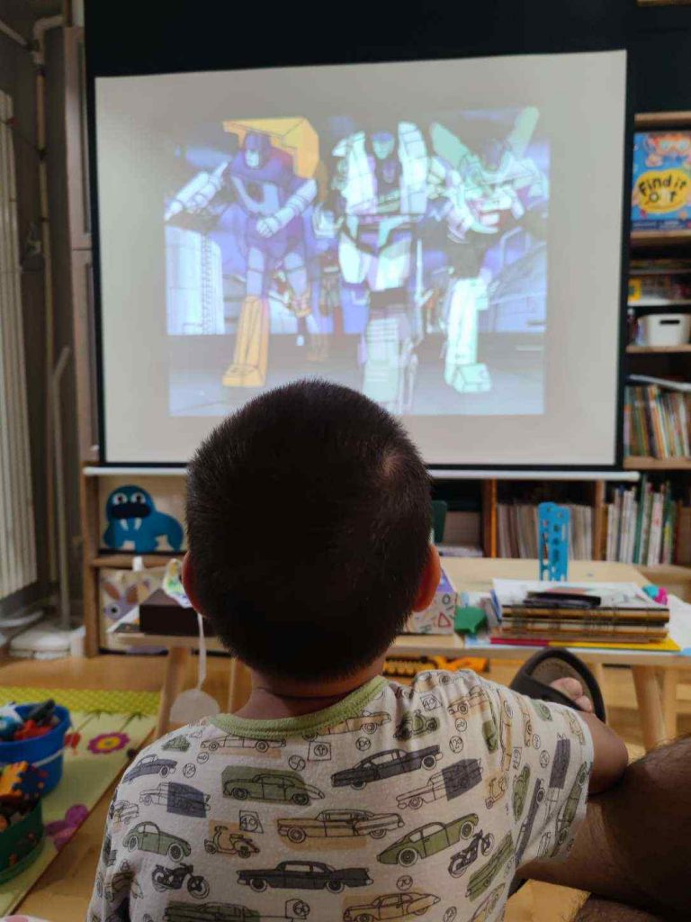 月亮很清楚,还能看出来右上角缺了一点点。查了一下望朔表,原来望是在早上7点的时候,所以右上角还真就应该缺一点点。爸爸的眼睛真好。