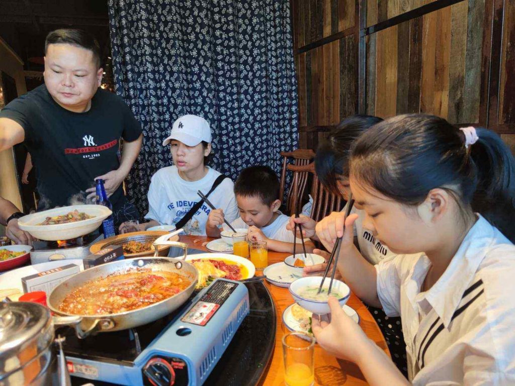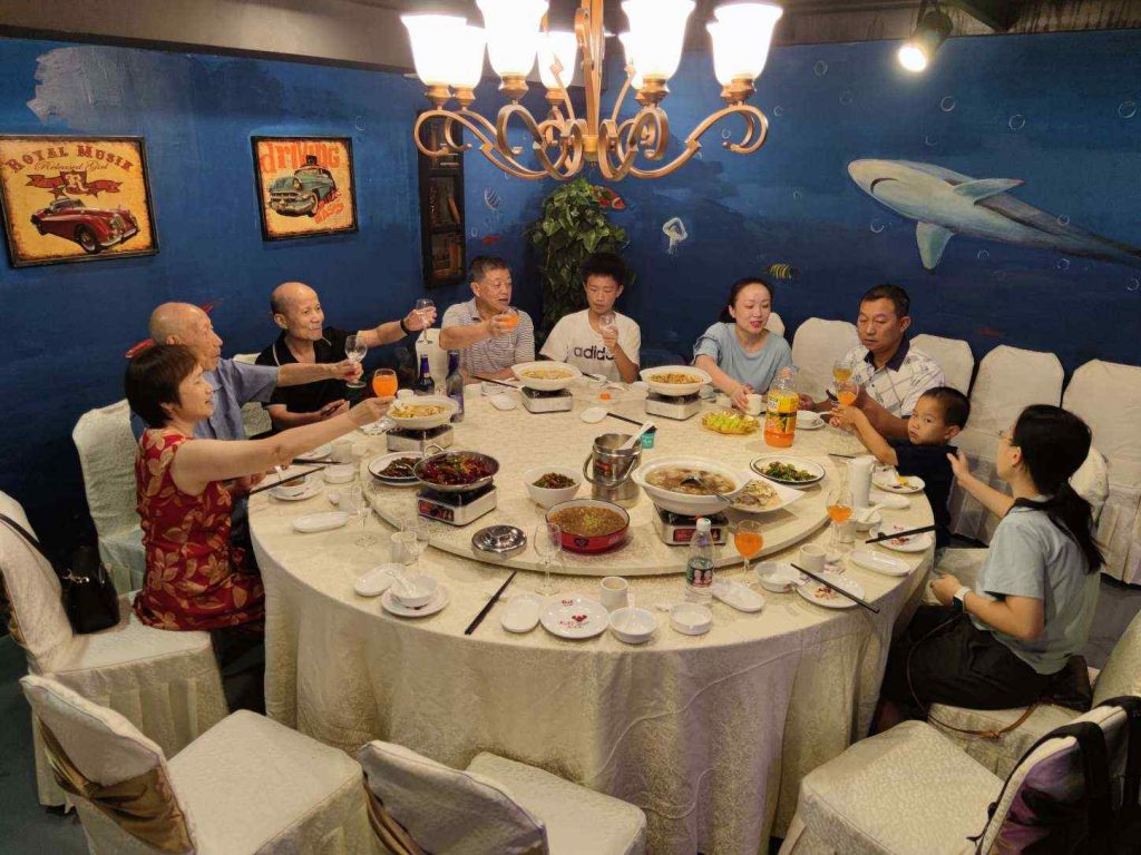 爷爷奶奶准备好了一桌团圆饭,还有默默喜欢的糖醋排骨。我们抓紧吃饭。