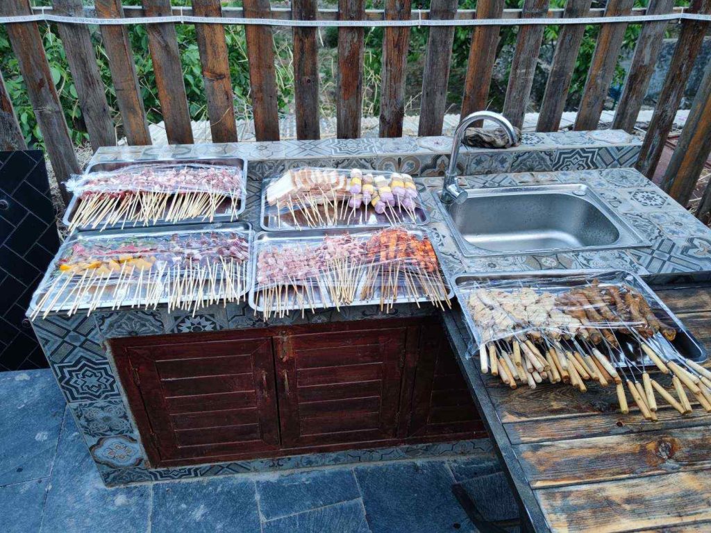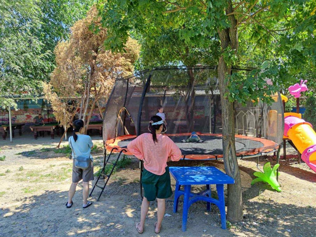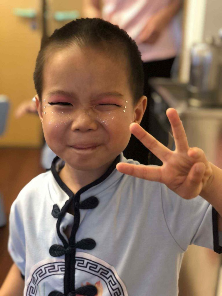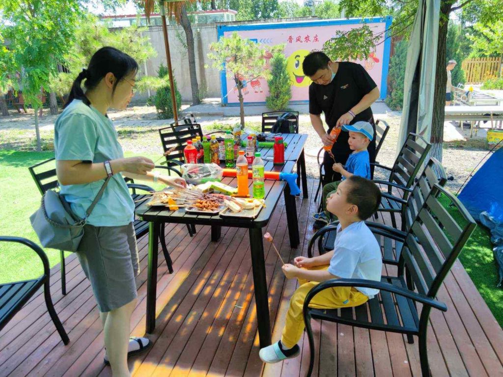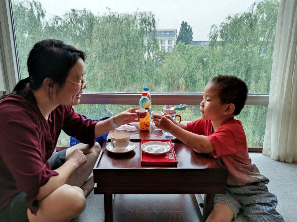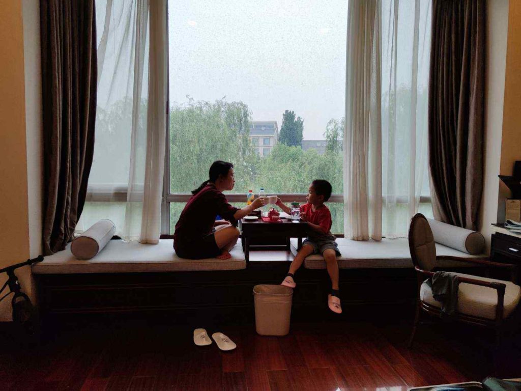 小朋友们陆陆续续都出来活动了,花园里一下热闹起来。随着厨房传来“吃饭啦”的招呼声,大家都奔向餐厅,围坐在大桌前吃早餐。这里的油饼和包子都非常好吃,爸爸一口气吃了四个油饼三个包子,把前两天因为食物中毒落下的热量全补了回来。一会儿得努力爬山了。