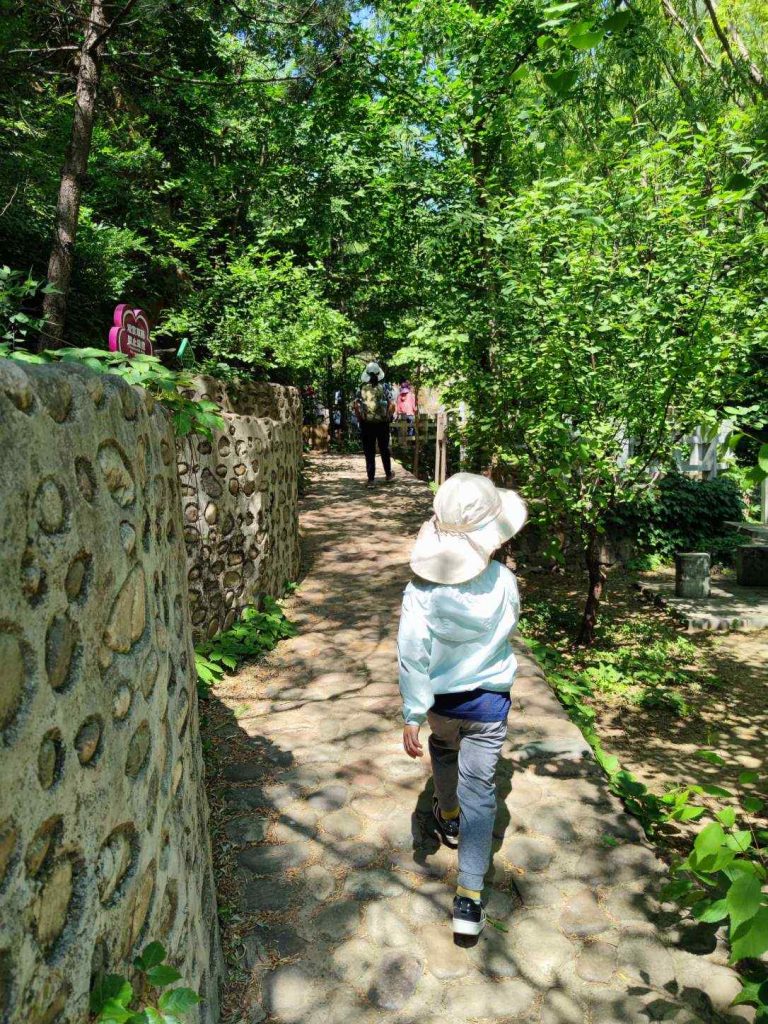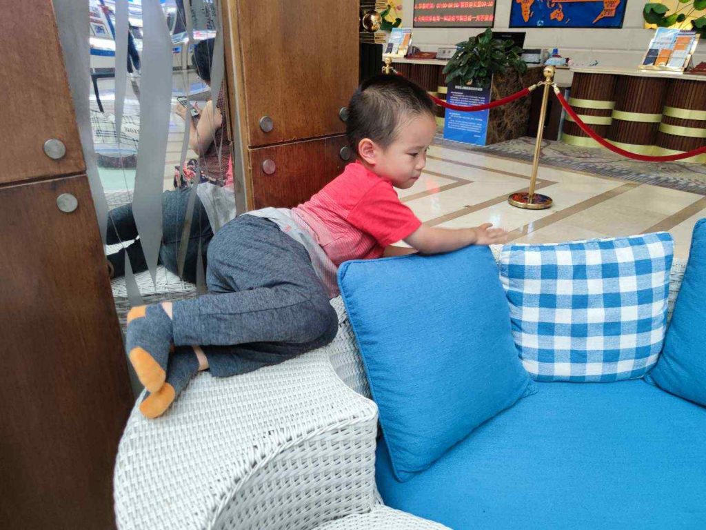 离开潭水,折上一段缓缓的山路。爬到一半,大家停下来休息,默默一边吃着阿姨送的饼干一边爬树玩,脸上一幅唯我独尊的表情。