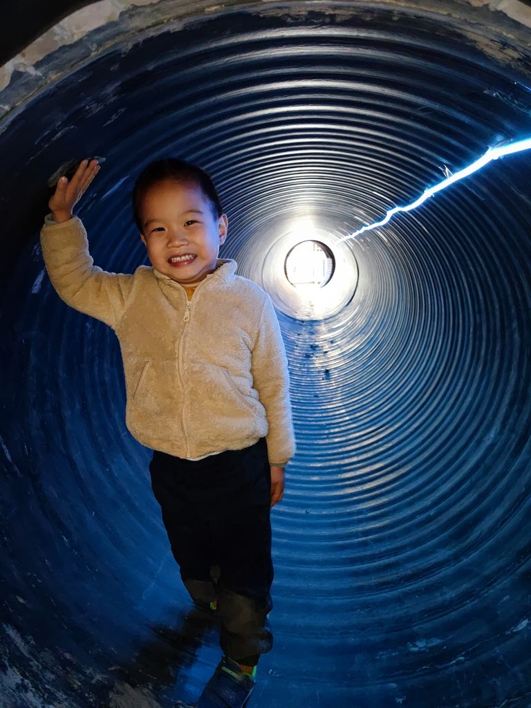 从第一次来谷山村以后,默默一直说还想来,我们在秋天最好的时候又来这里穿隧道了。这次爸爸跟着默默在两个长隧道里来来回回钻了两三趟,累死了!