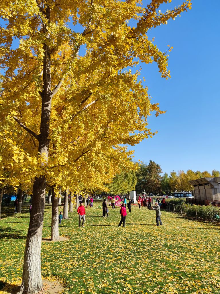 又到了一年深秋,银杏渐渐都黄了。昨天在停车场看到的银杏树黄的正好,于是今天就来林子里玩落叶暴风雨了。林子里大部分的树都已经黄了,还有少数几颗泛点绿。地上的落叶还不够多,但是绿色的草地还露在外面。绿底黄叶很好看,比三里河路的网红林子下面的土路好看多了。