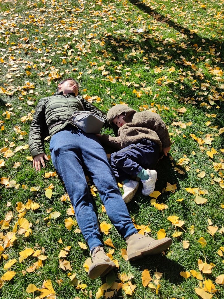 上周末智远哥哥来家里玩,把家里的玩具弄得乱七八糟,默默非常不开心。这个周末银杏叶子都掉得差不多了,我们打算不叫别人自己清清静静地去树林玩。