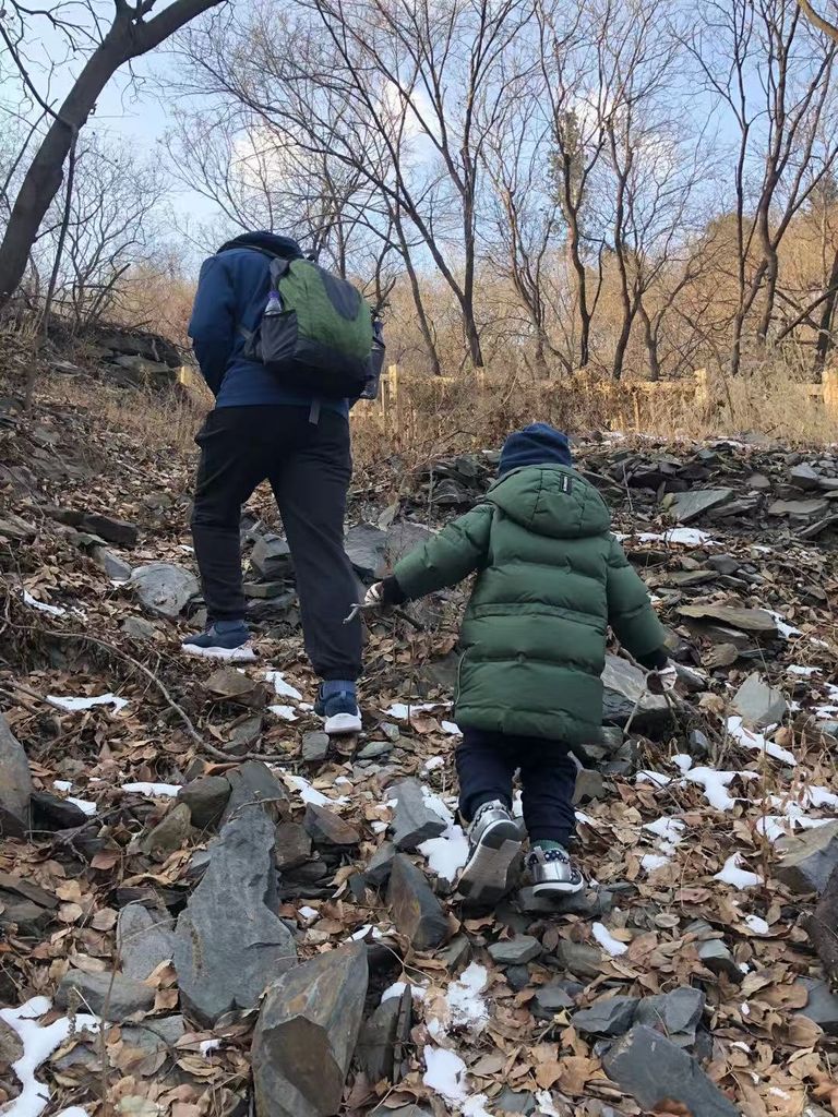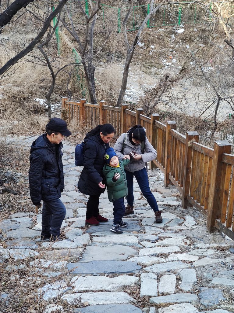 今天天气不错,不是太冷,我们决定带姥爷姥姥一块儿去转转我们常去的小环线。阴面的山坡上还有些没来得及化的雪,满足了默默踩雪的愿望。这次还特地上了塔林,只有在冬天才会发现塔林附近的古松都那么挺拔,树形也很俊朗。上到山顶,空气很通透,天空很蓝,瞭望塔也显得好看了一点。