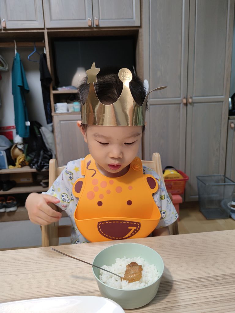默默最喜欢听爷爷讲故事了,而且戴上王冠真得很像国王呢,就跟彩虹国度里的国王一样。