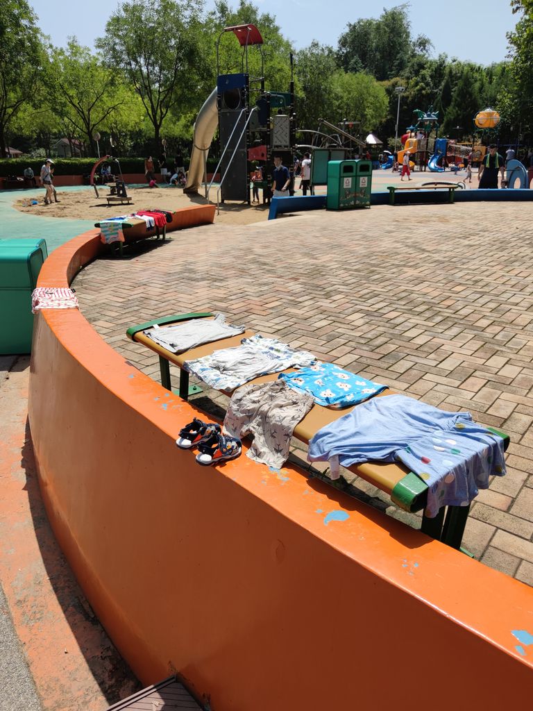 阳光下给娃们晒的衣服一片一片的,大家都是有备而来了。
