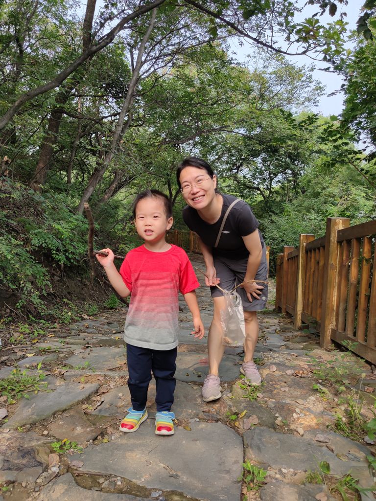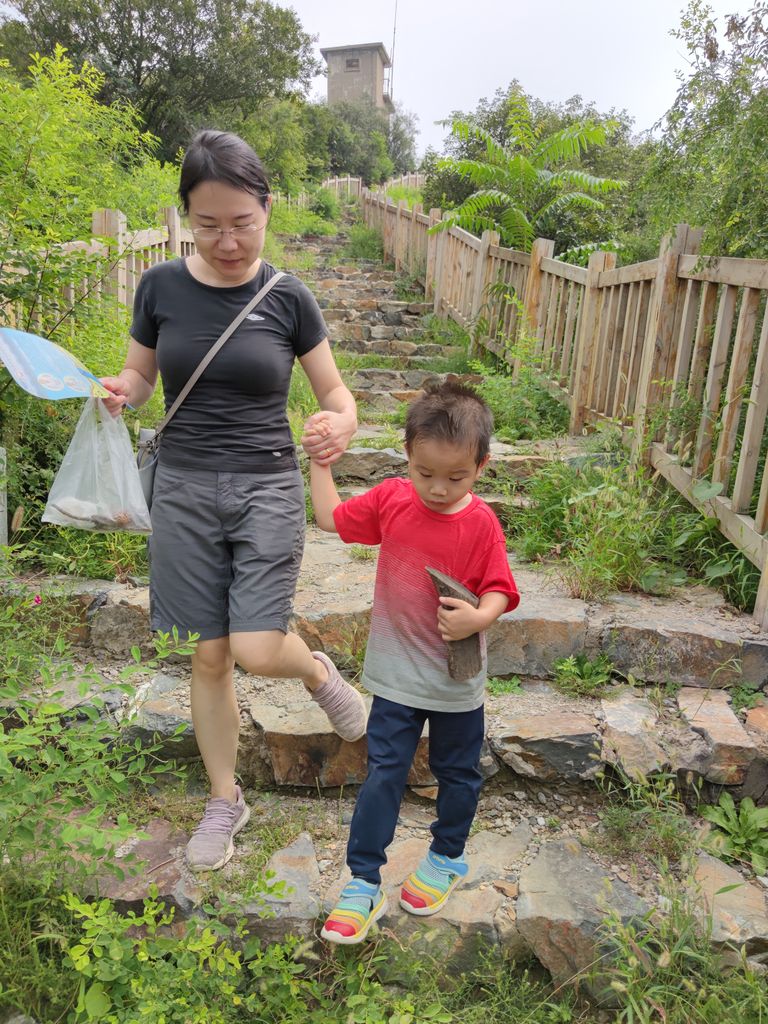 今天一路上除了摘野果和好看的树叶,还看到很多蝉蜕和大蘑菇。空气挺通透,在山顶午餐的时候还看到不错的风景。